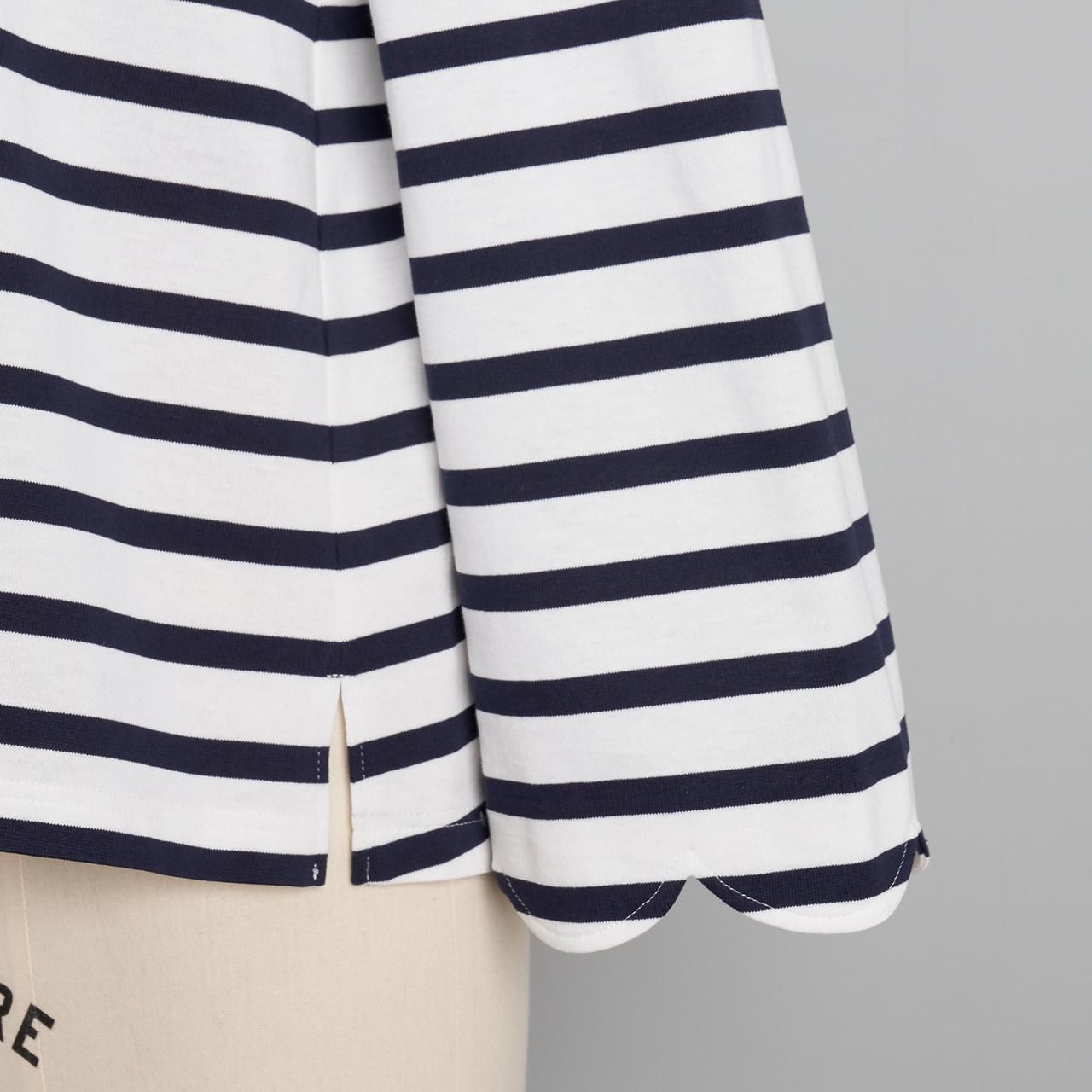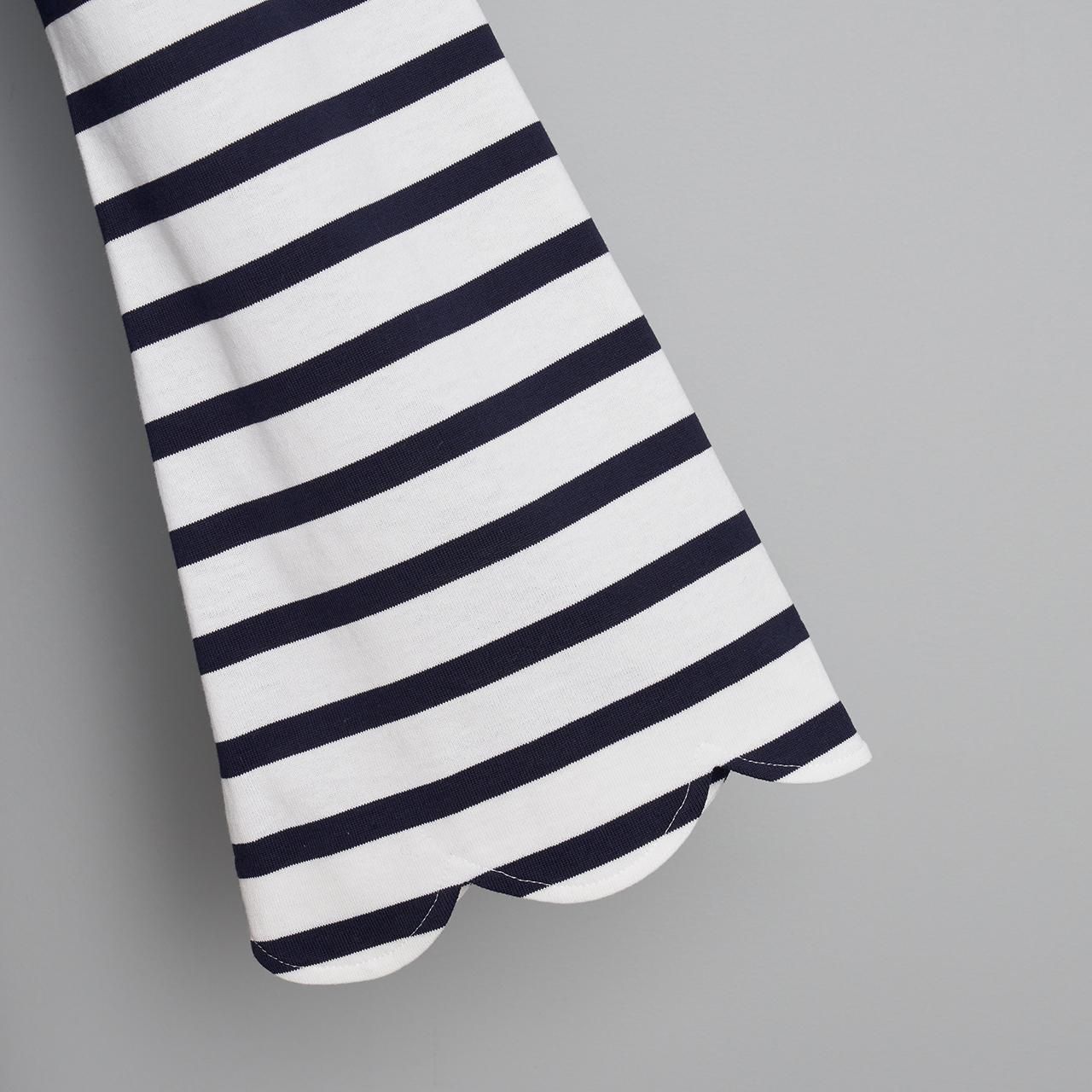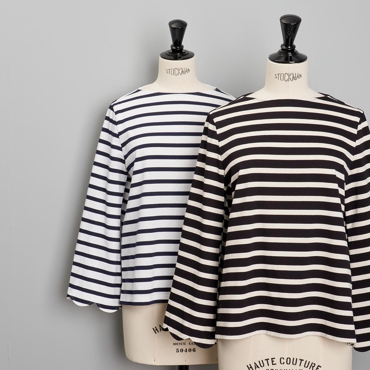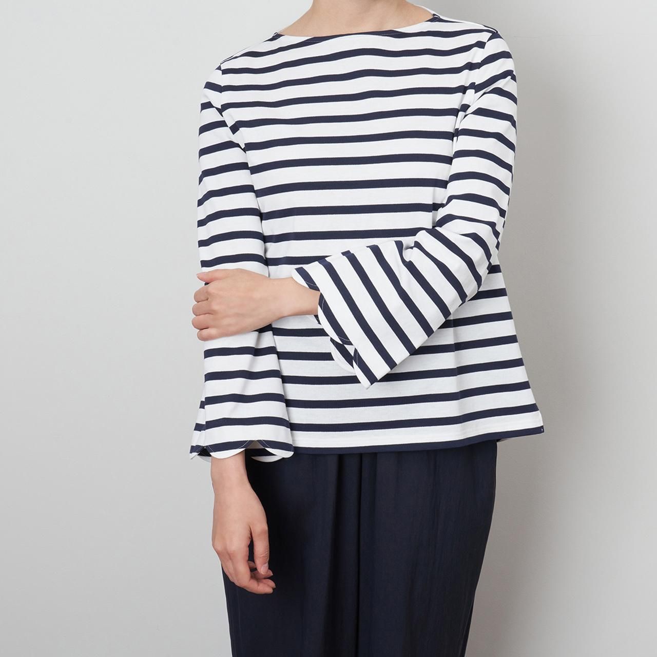 柔らかすぎることなく、堅くも無い、程よい厚みのボーダー生地を選び、ボードネックの緩やかなAライン。