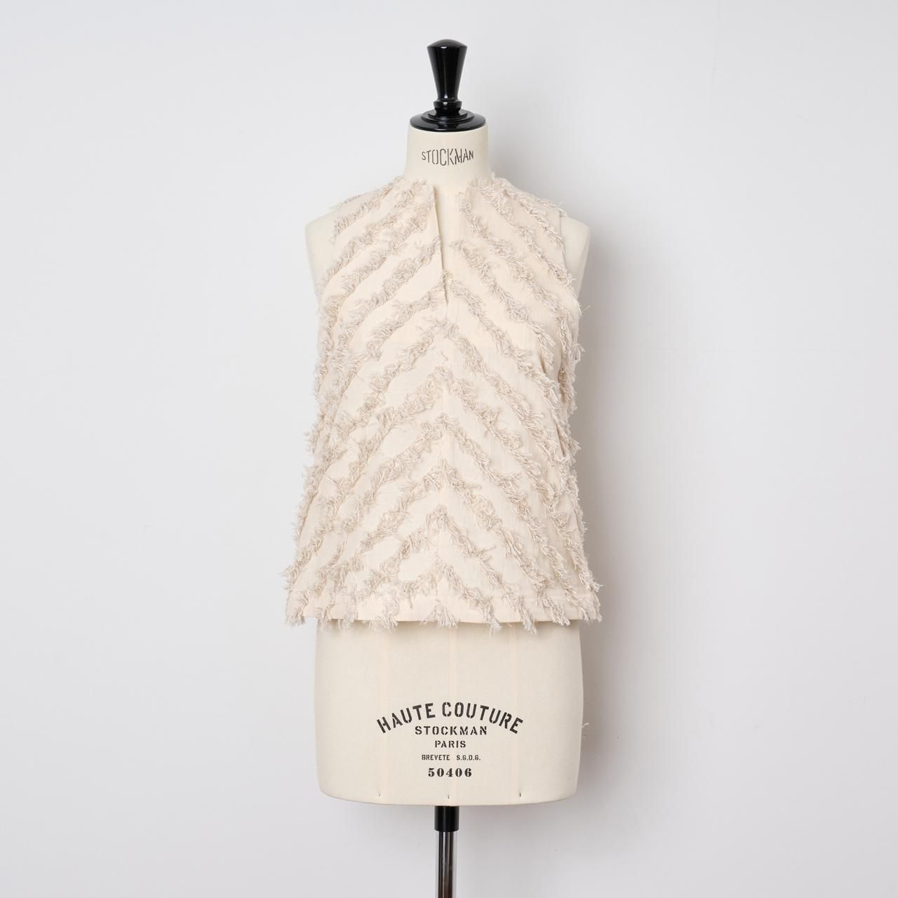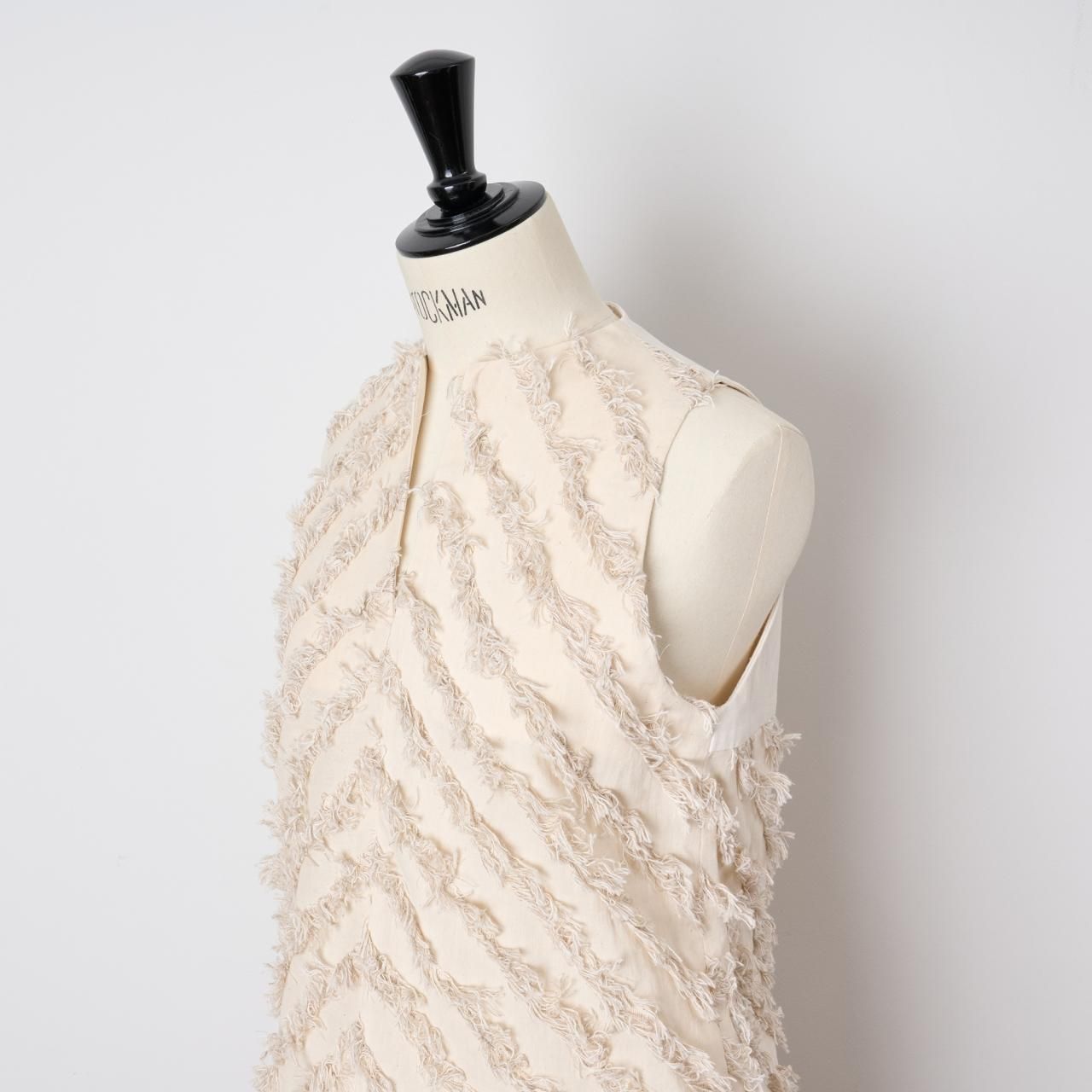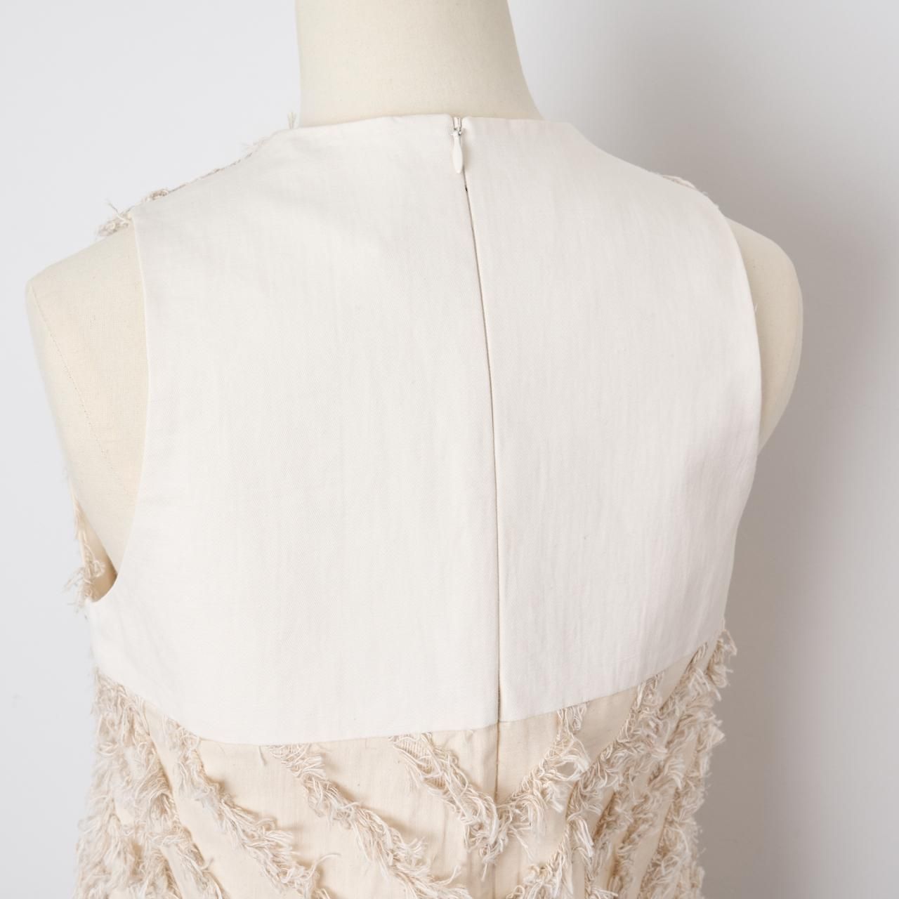 全体的に斜めに施されたフリンジが目を惹くデザインです。