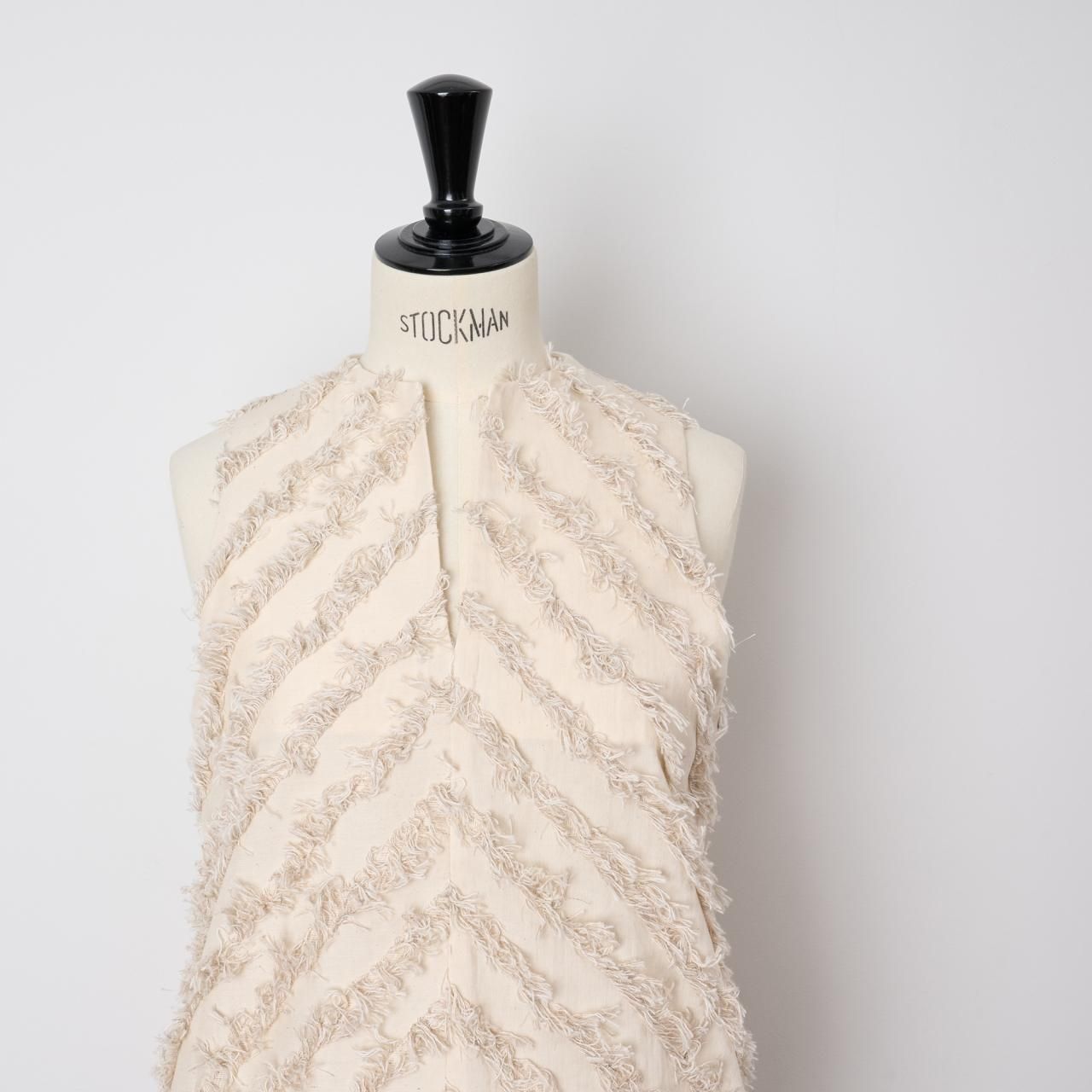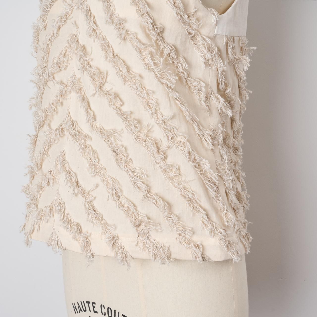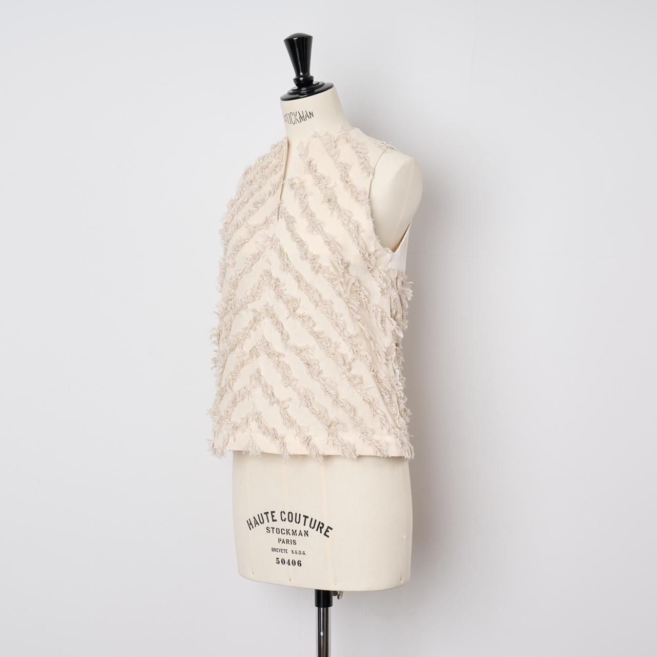 全体的に斜めに施されたフリンジが目を惹くデザインです。