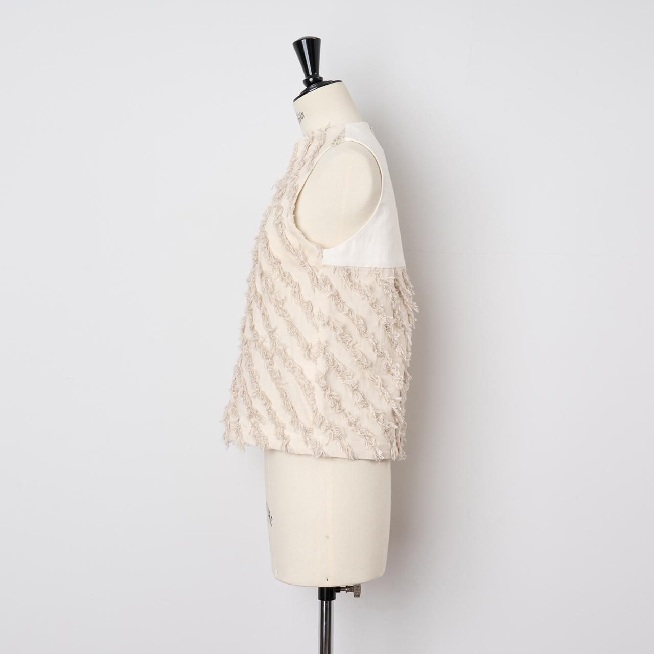 ブラウスやワンピースにレイヤードするだけで違った印象を楽しめるベスト。