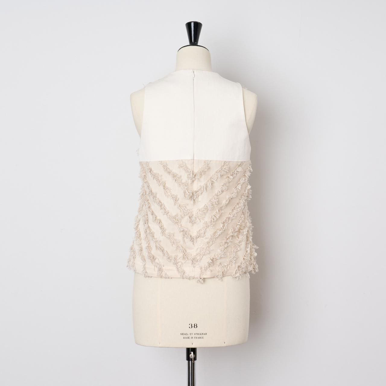 バックの上部分にはフリンジが施されていないのですっきりと見え、ワントーン明るい生地が抜け感を出してくれます。