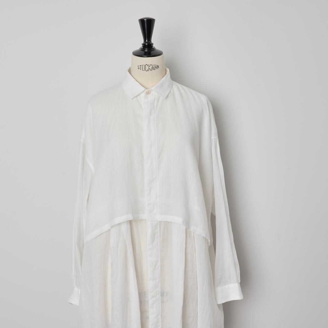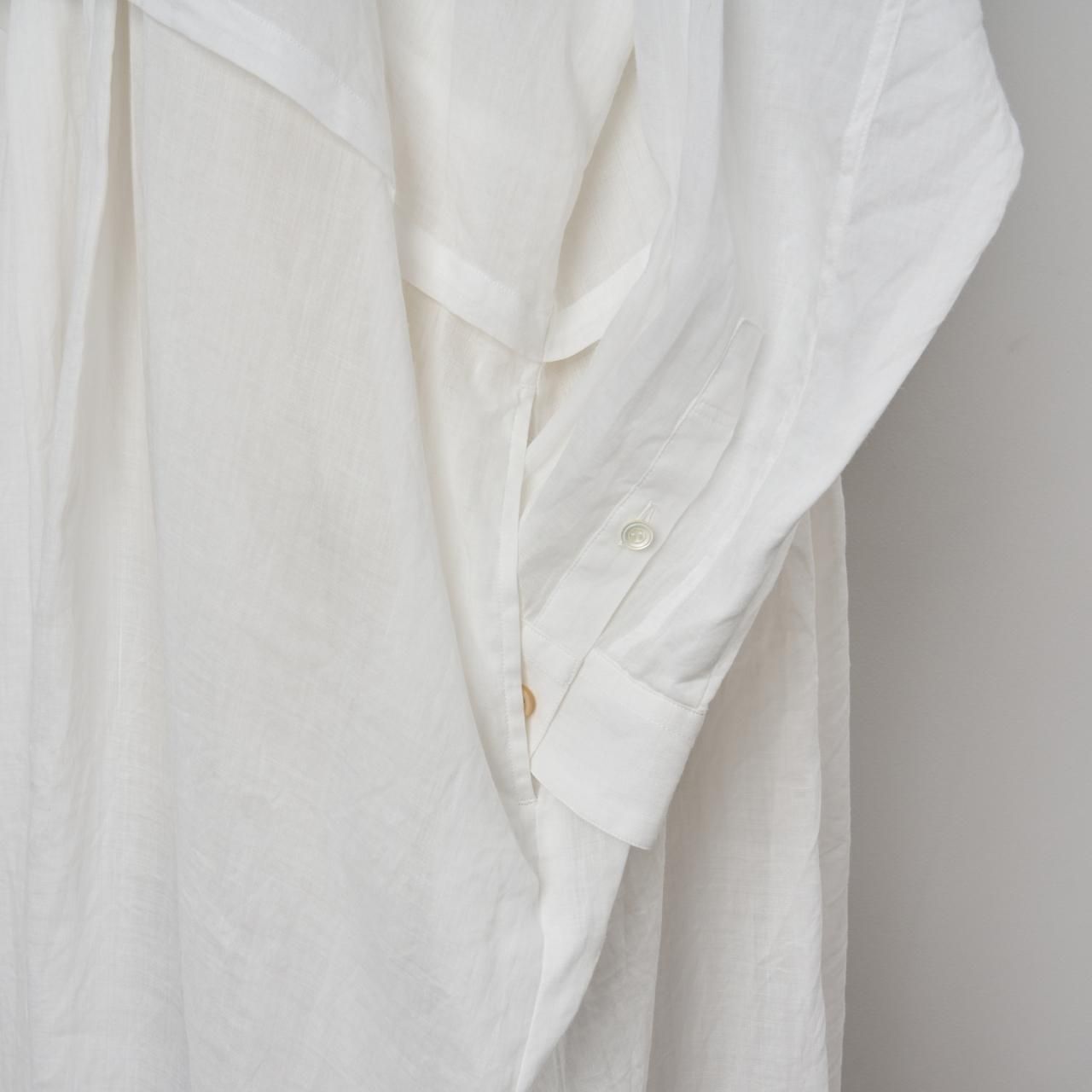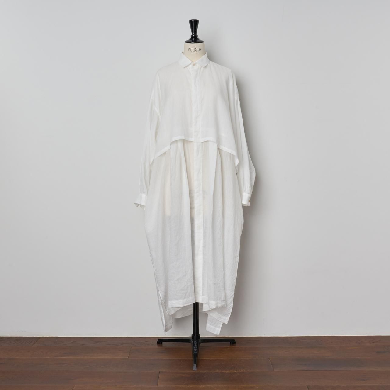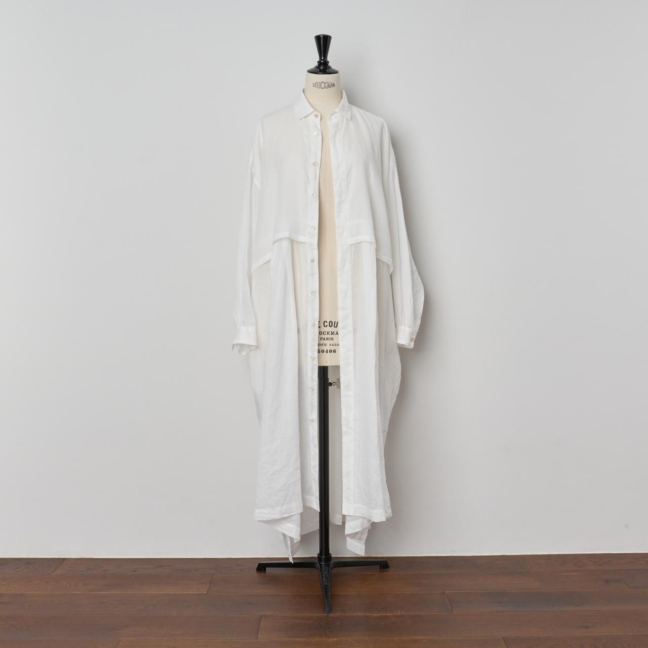 オーバーサイズのコートのように羽織りでも着ていただけるのはもちろん、インナーを合わせてワンピースのように一枚で着ていただいたり、デニムなどとレイヤードしてもお楽しみいただけます。