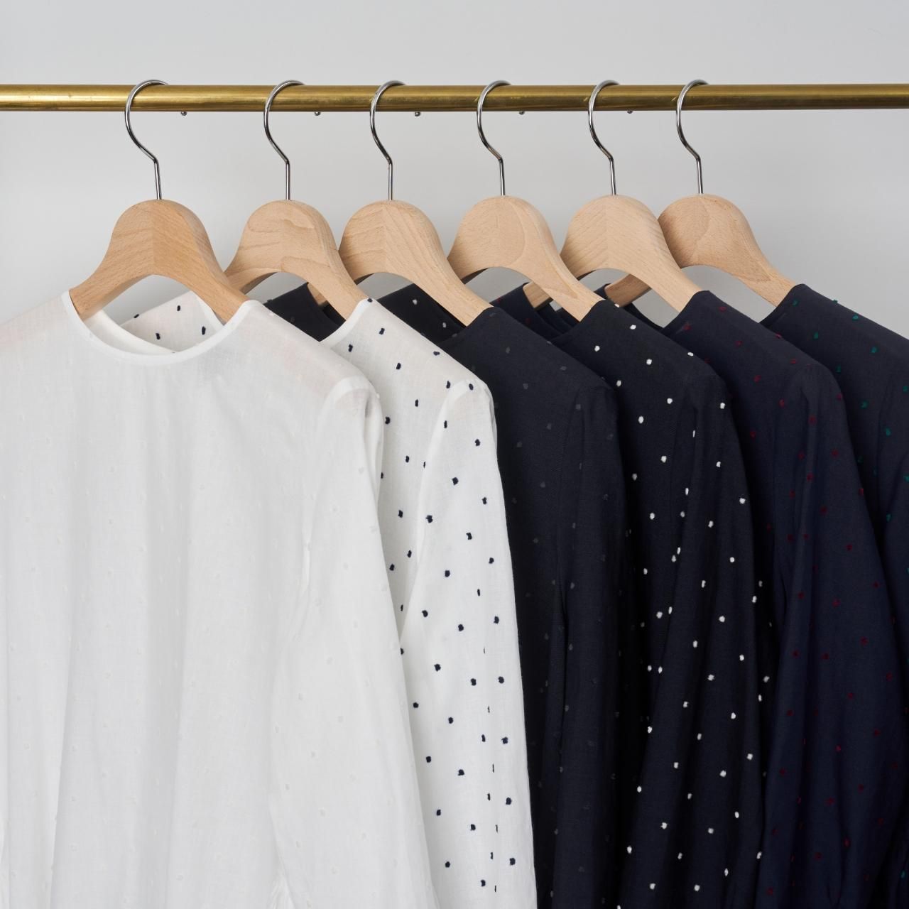七分袖で袖口にはスリットが入っているので、折り曲げ易く、一年の中でも長い時期着られるワンピースです。