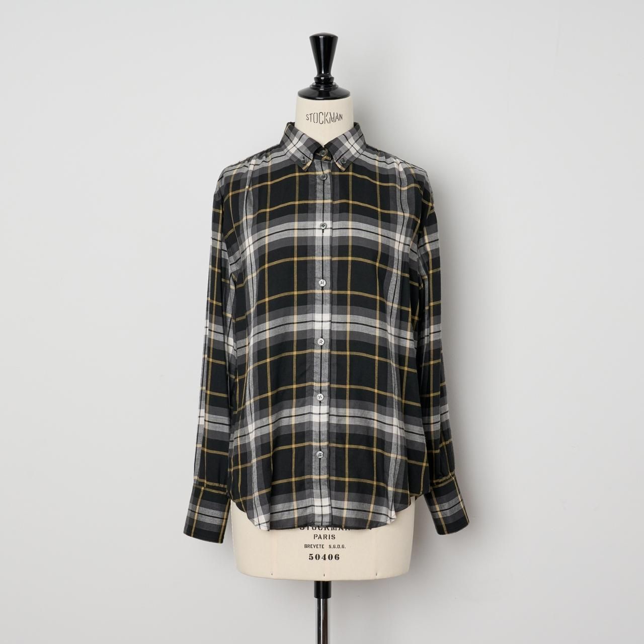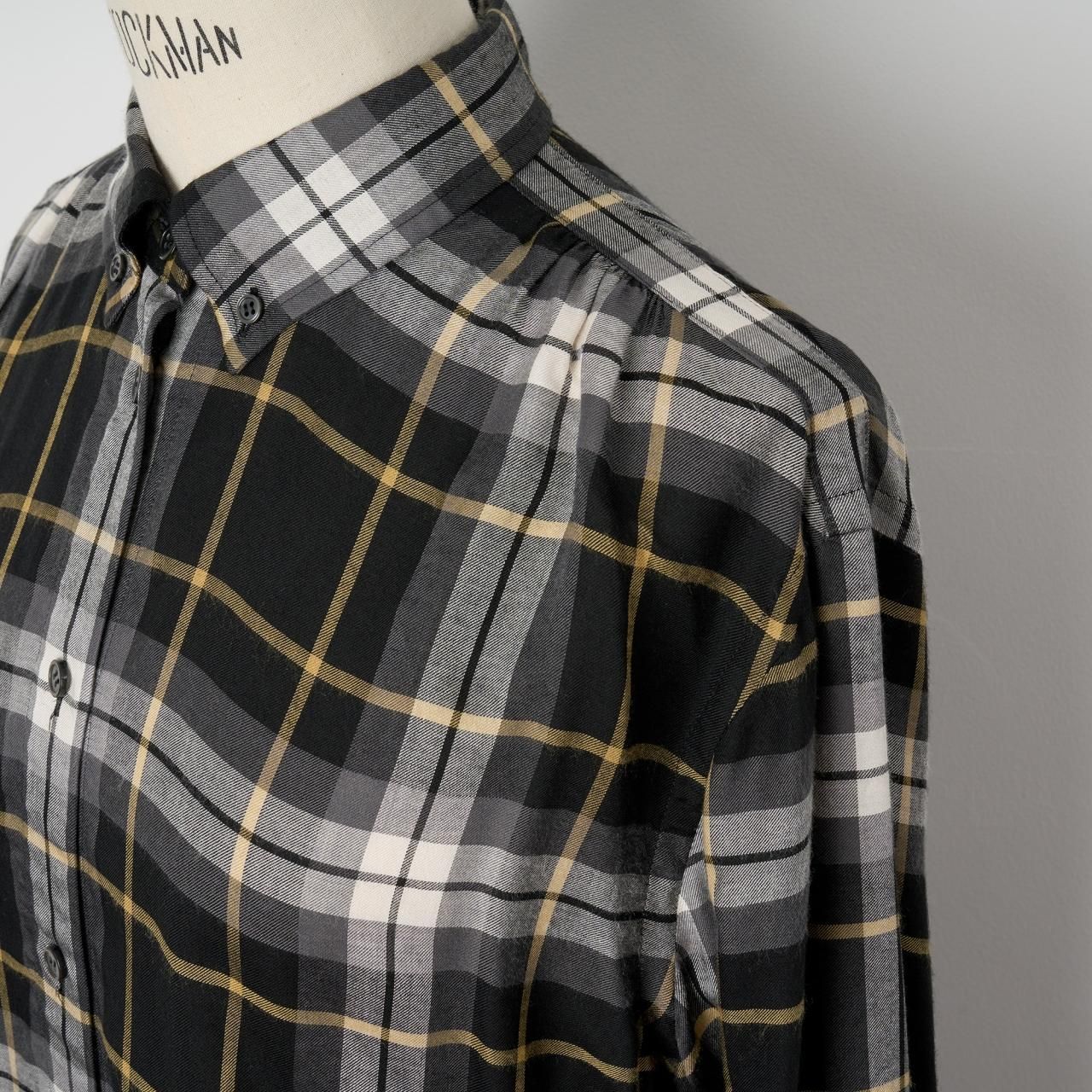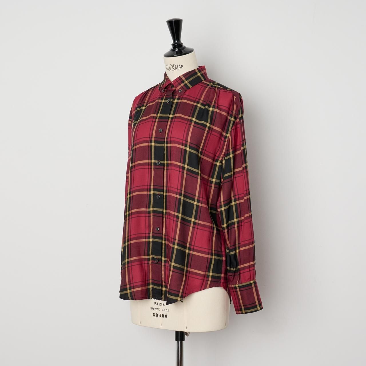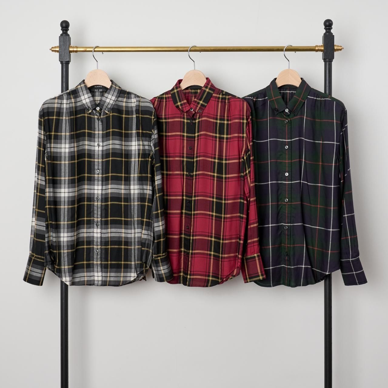 レーヨンとテンセルで作られた肌触りの滑らかな生地を使って作られたチェックブラウス。