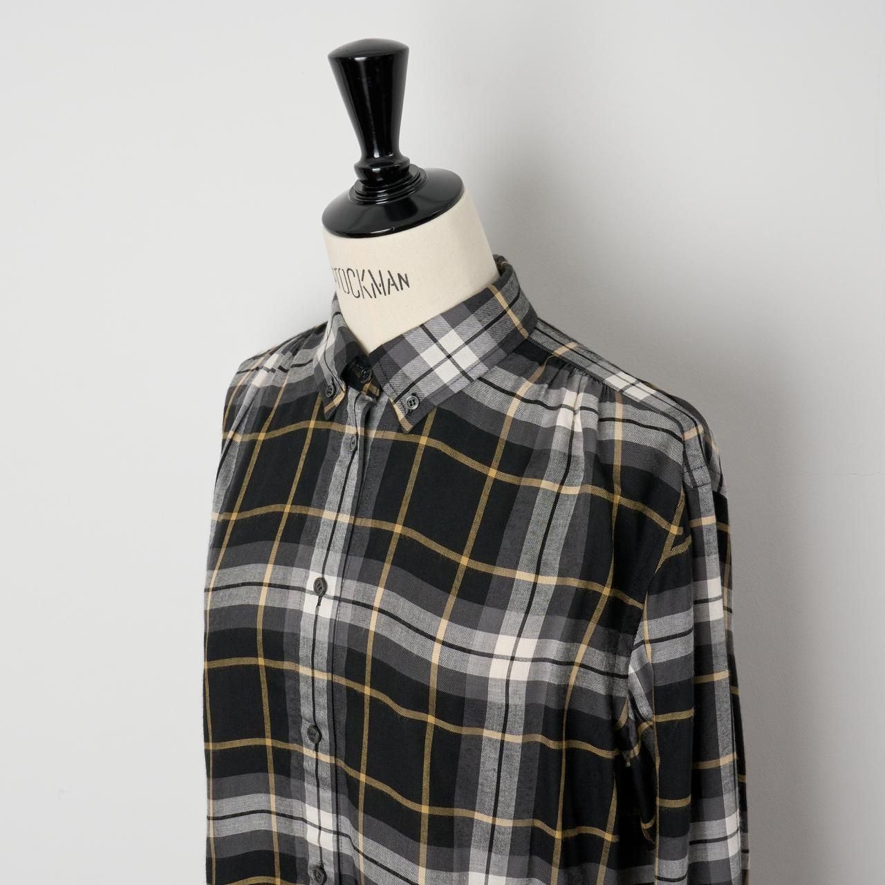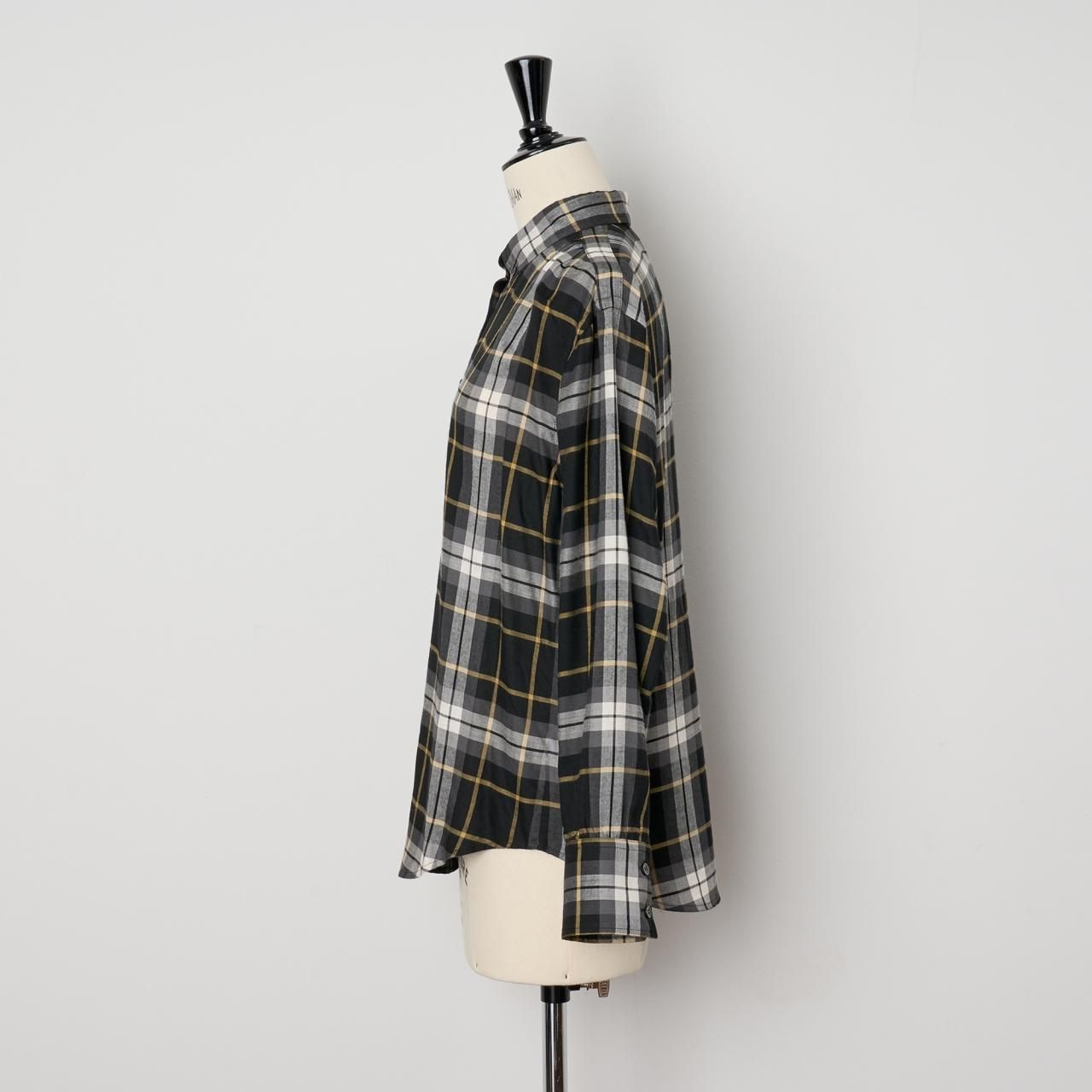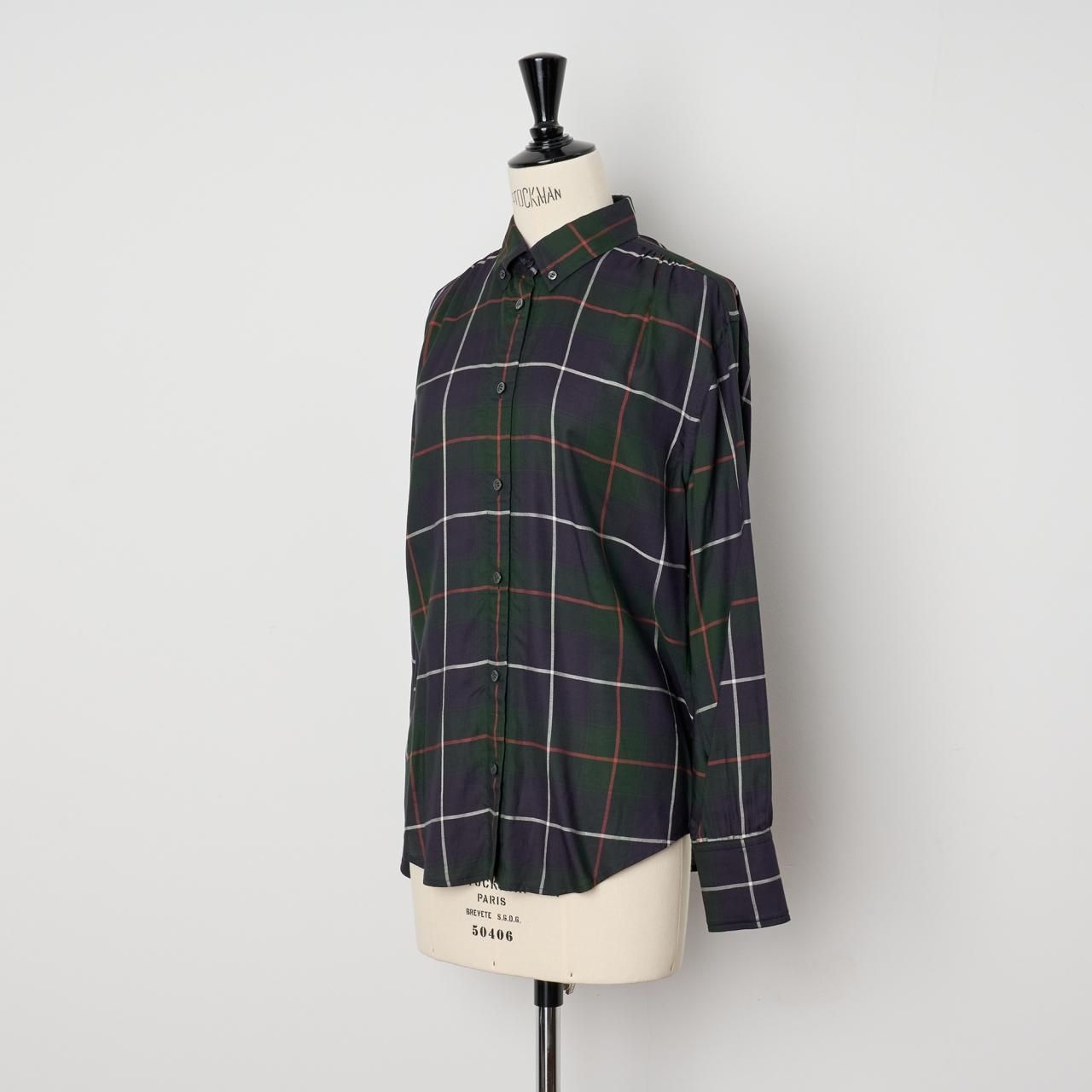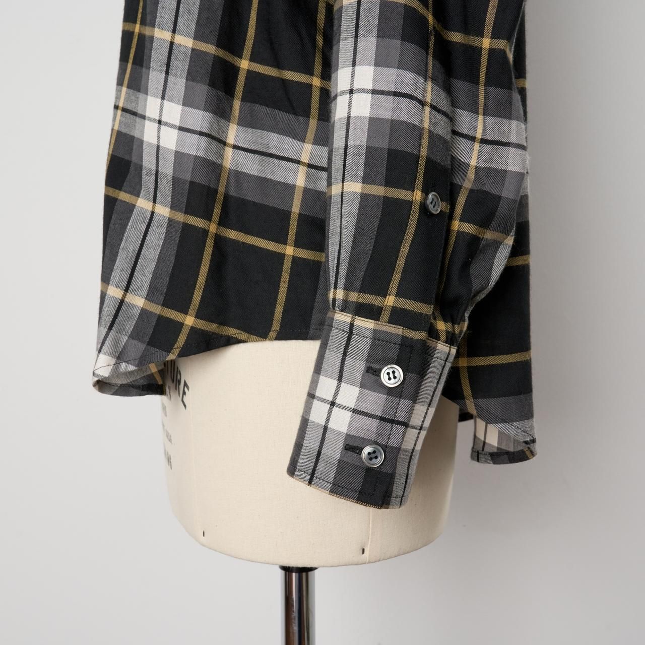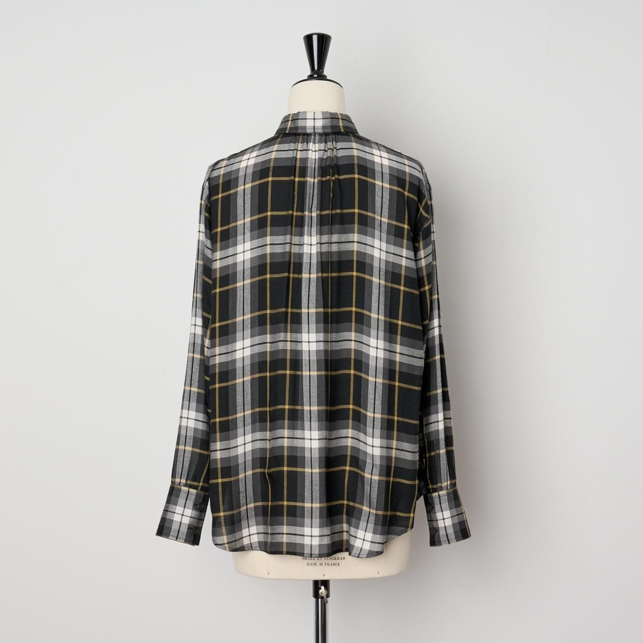 背中に寄せられたギャザーと生地の落ち感により上品さがプラスされ、チェックシャツのカジュアルな印象がアップデートされた気がします。