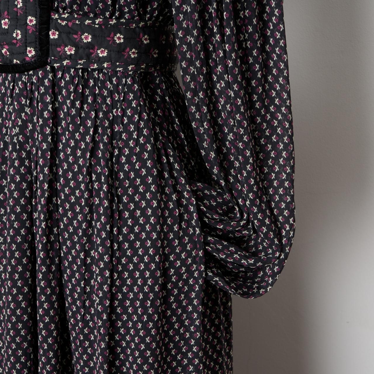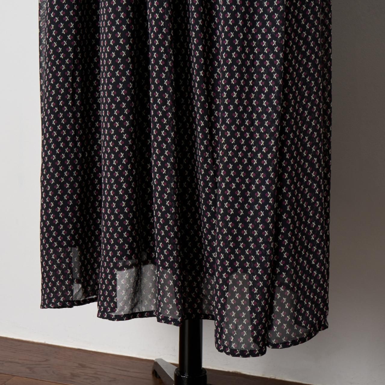 生地をたっぷりと使用したボリュームスリーブやスカートが動いた時に素敵に見せてくれ、透け感もあるのでとても軽やかな印象です。