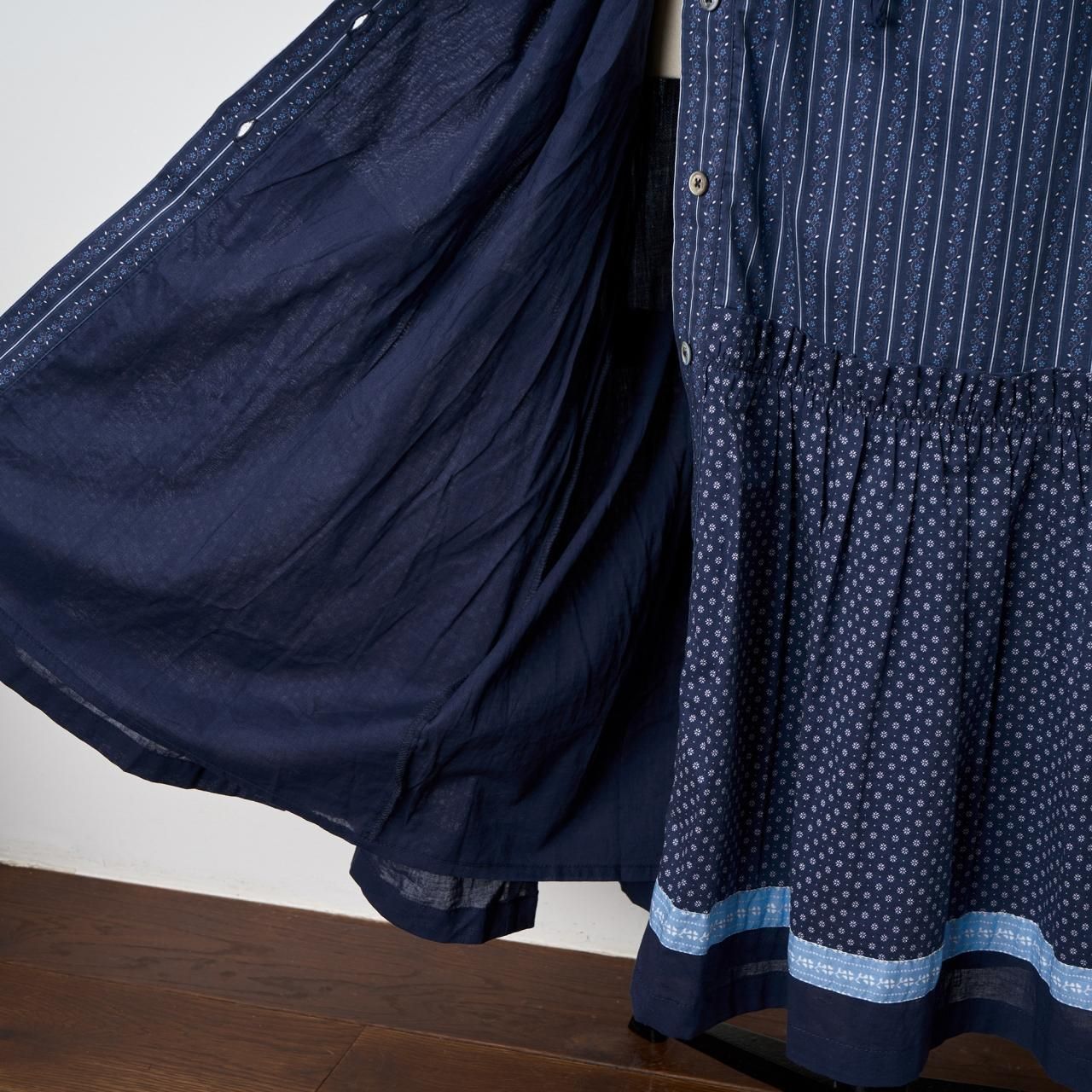 軽やかなコットンの生地にパッチワークプリントが目を惹くフォークロアな雰囲気のワンピースです。