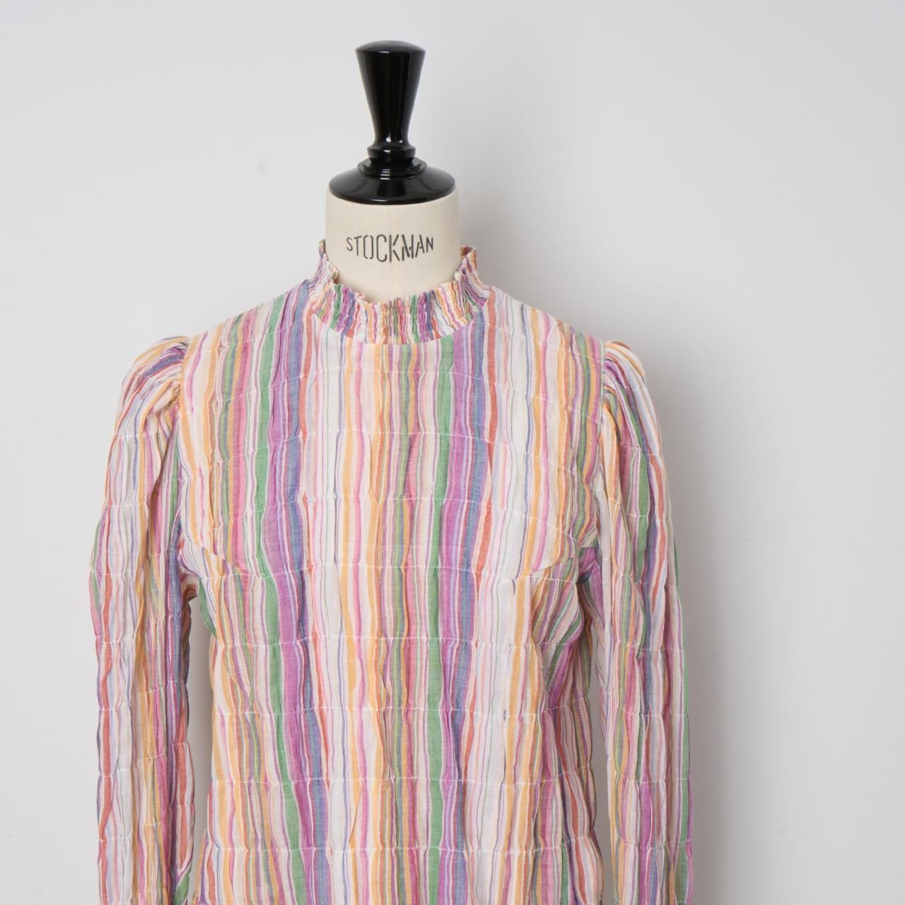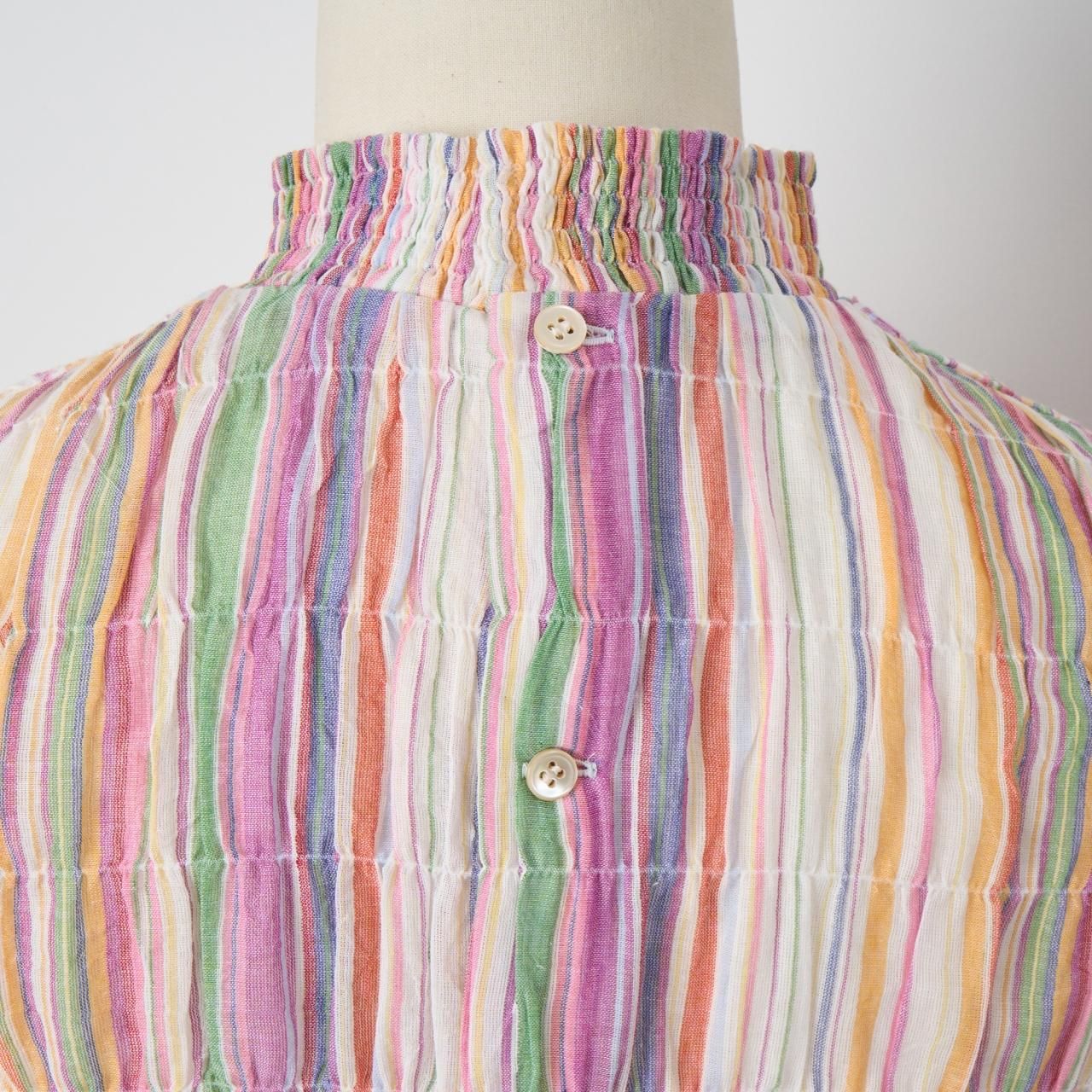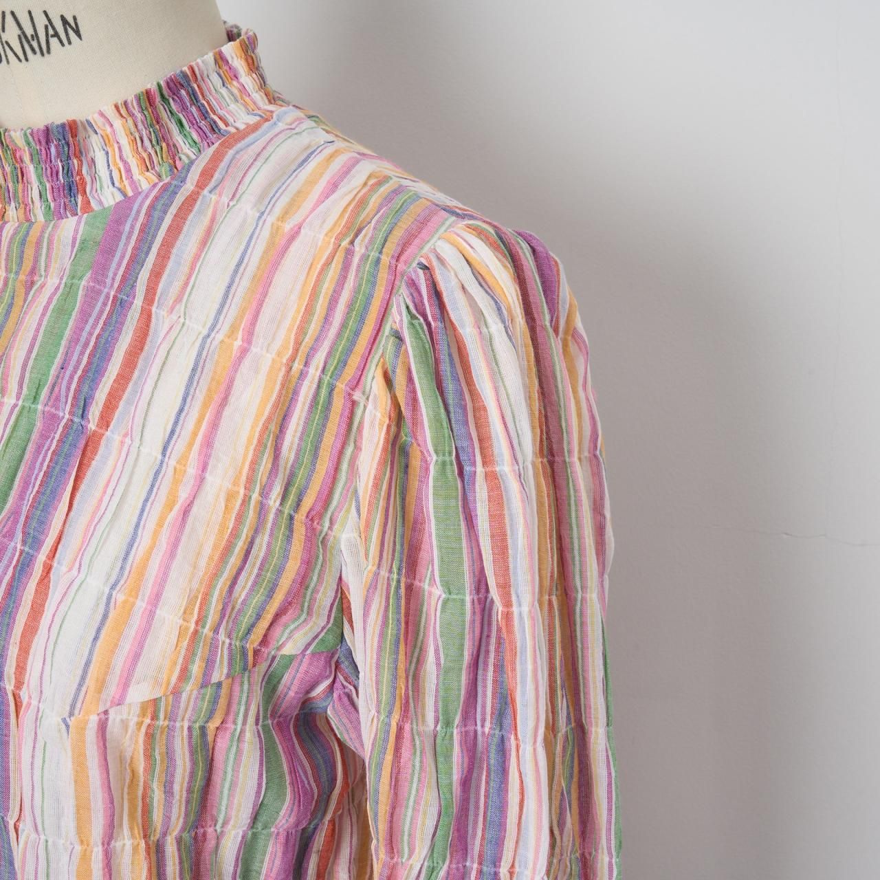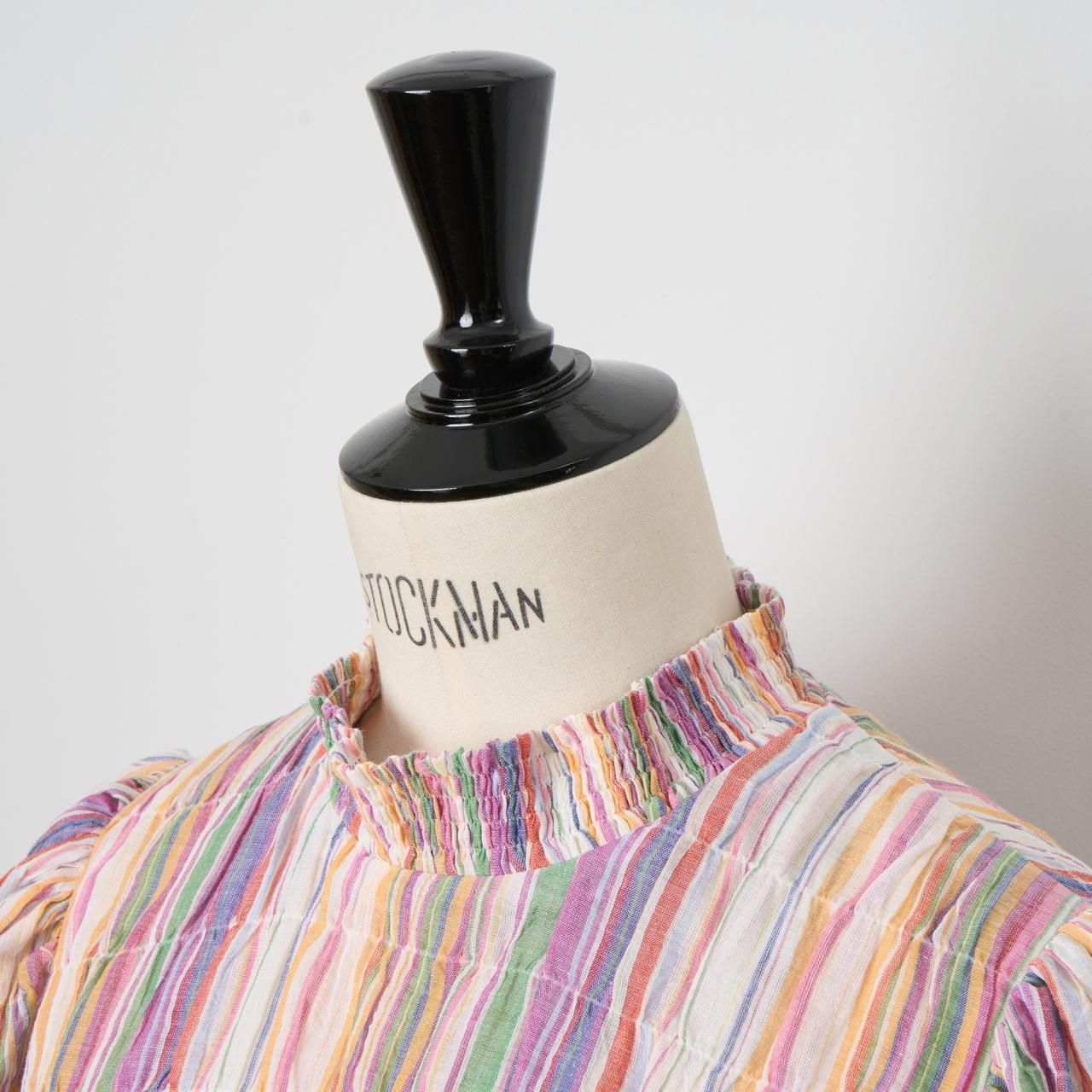 スタンドカラーにパフスリーブデザインになっていて着丈が短めなのでシルエットもスッキリとバランス良く着ていただけます。