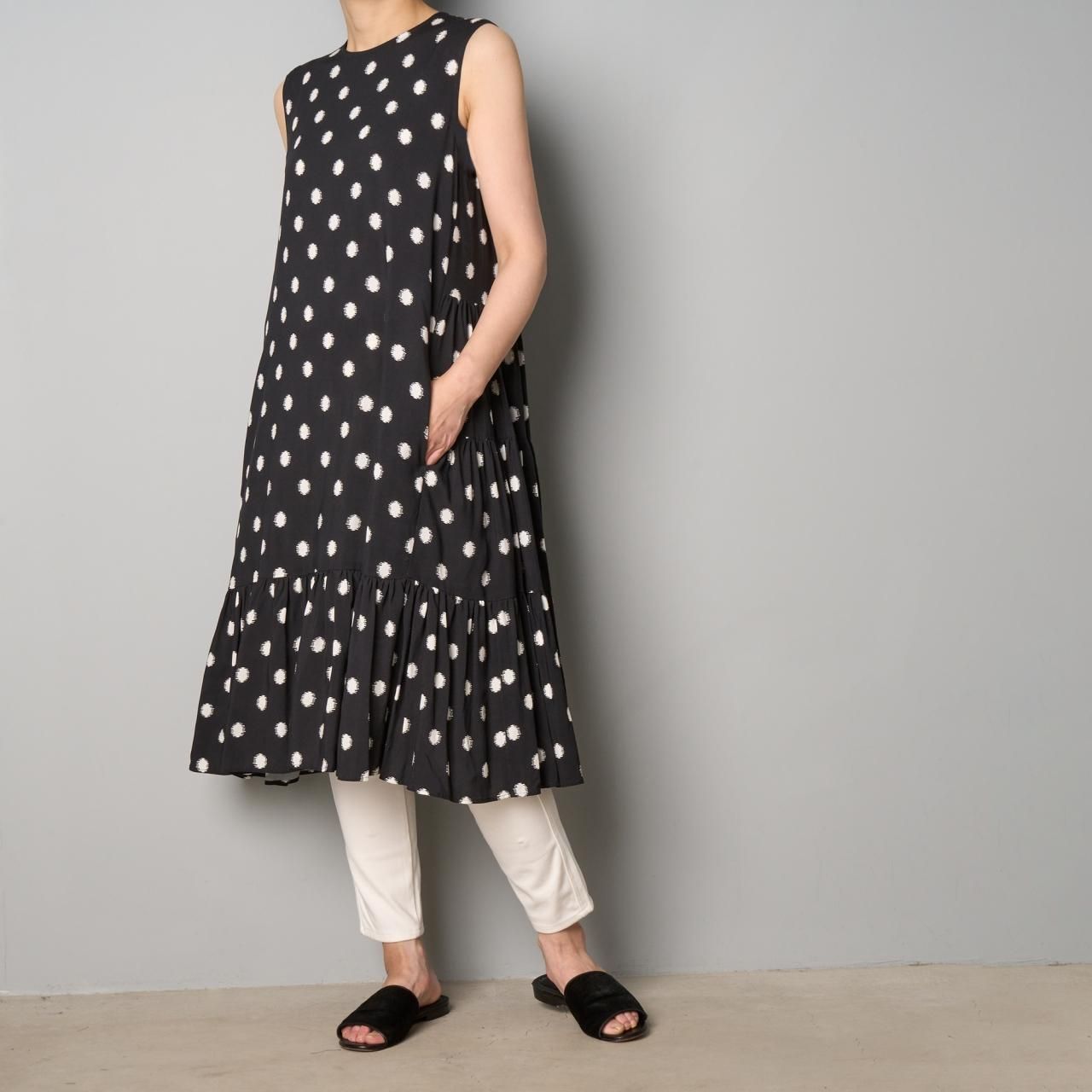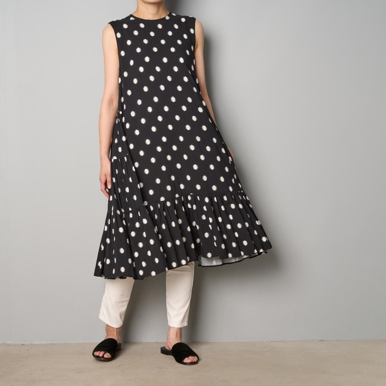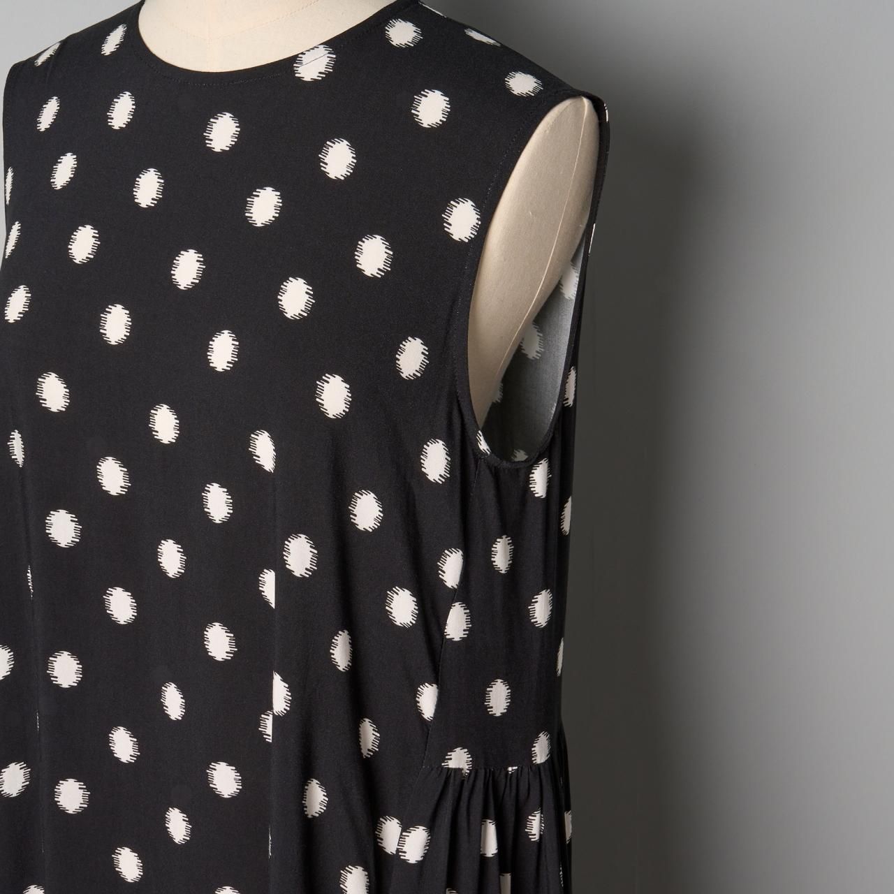 落ち感のあるレーヨン素材にぼかしたようなドットプリントが目を引きます。