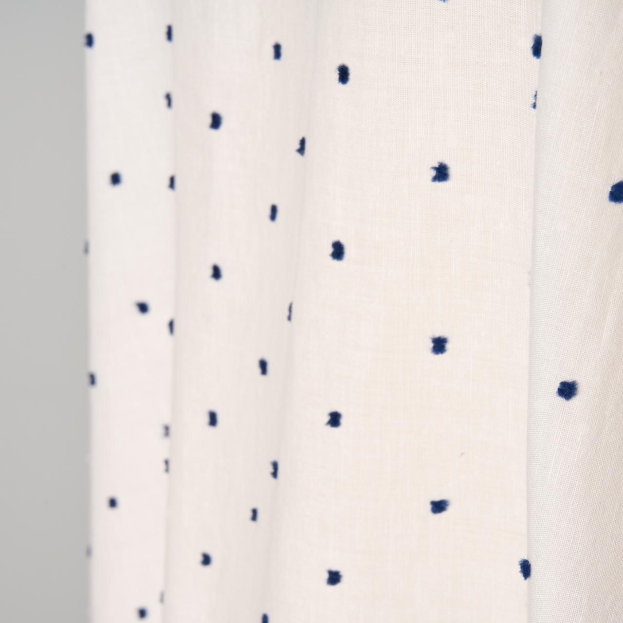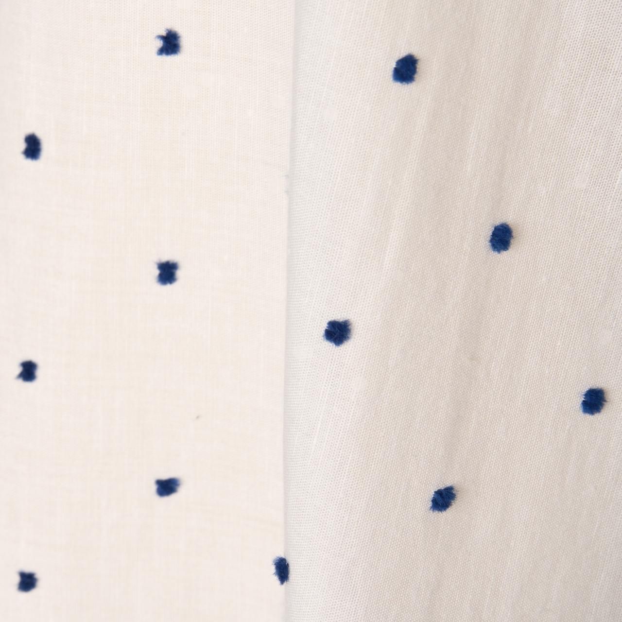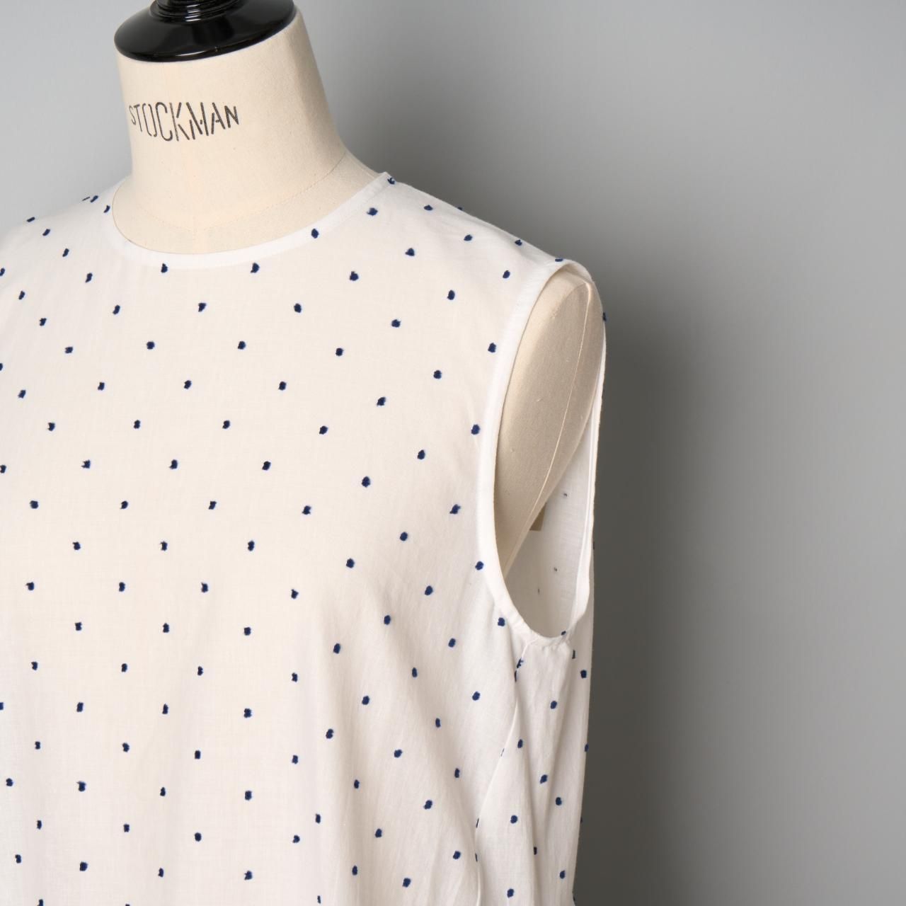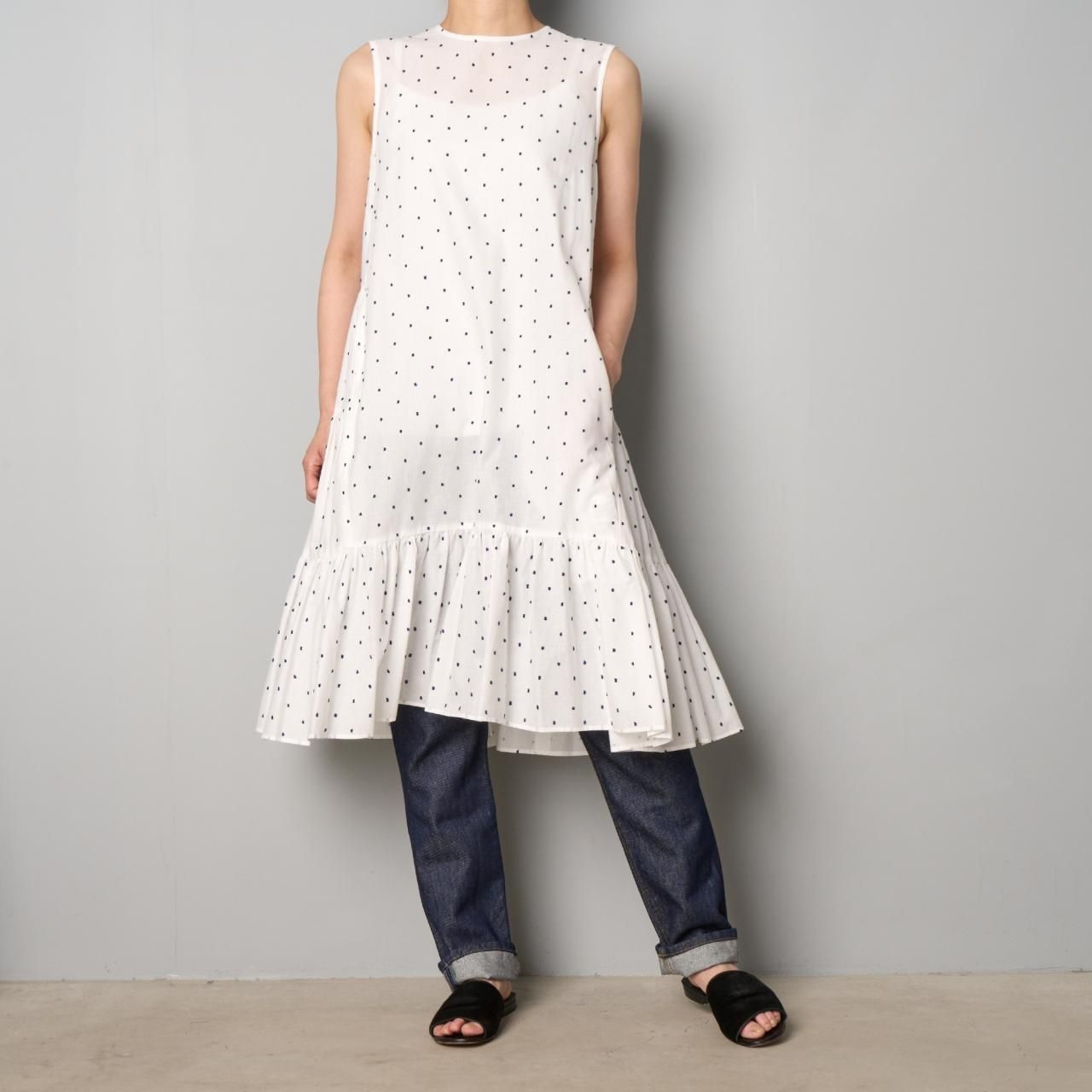 小さなドット模様が凹凸に織り込まれた、綿麻素材の生地のワンピースです。