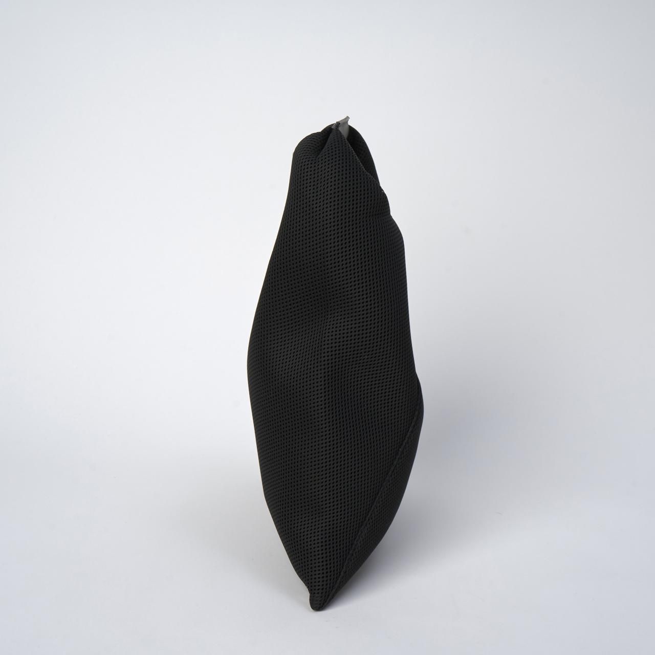 立体感のあるフォルムは縁のスナップボタンを留めると形が変わり、用途に合わせて変える事ができます。