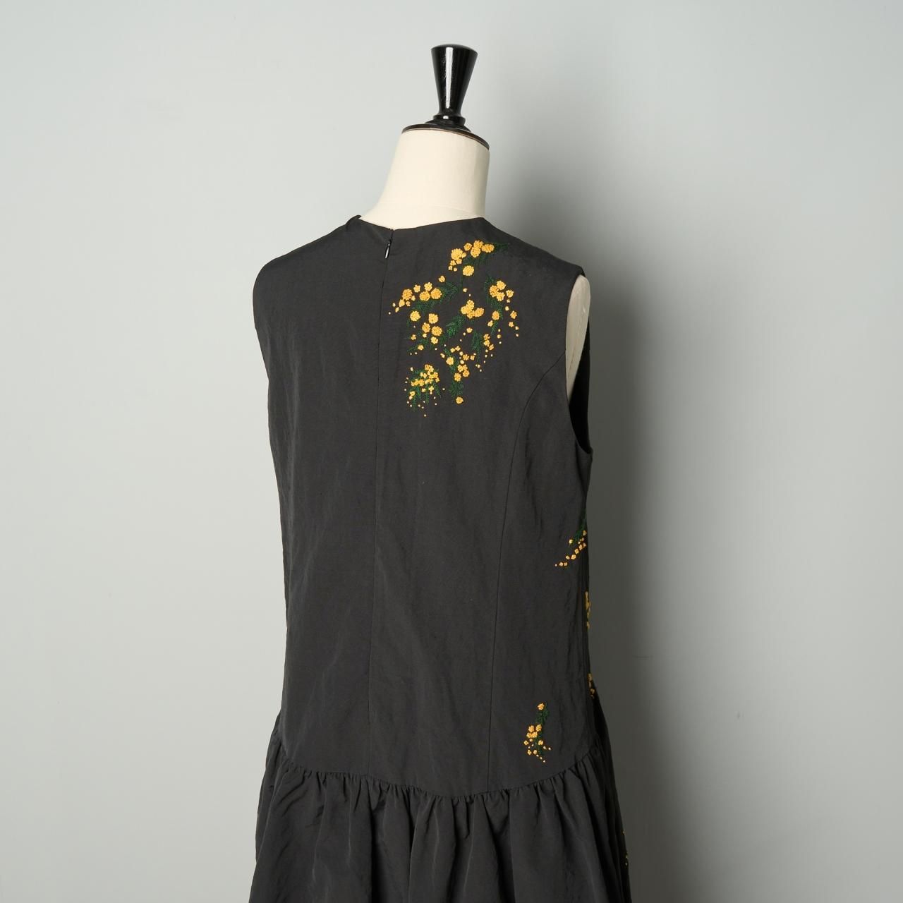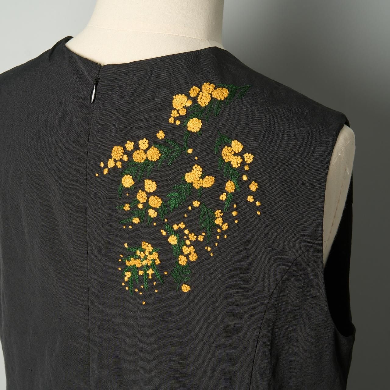 フロント全面と背中の右肩にたくさんのミモザ刺繍を入れました。