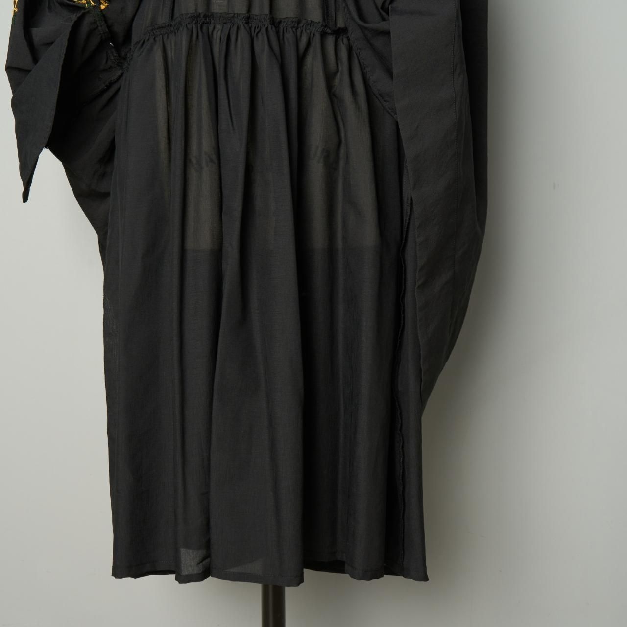 切り替え位置全体にギャザーをたっぷりと入れ、前後の着丈に差をつけ前から後ろに流れるようなラインをつけました。