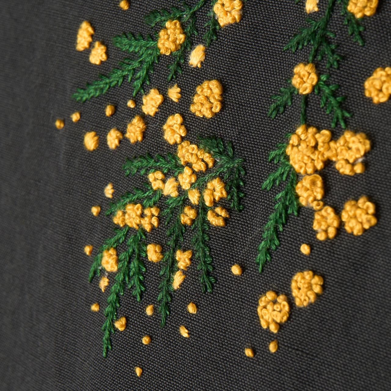 ミモザの刺繍が華やかでとても印象的な一着に仕上がりました。