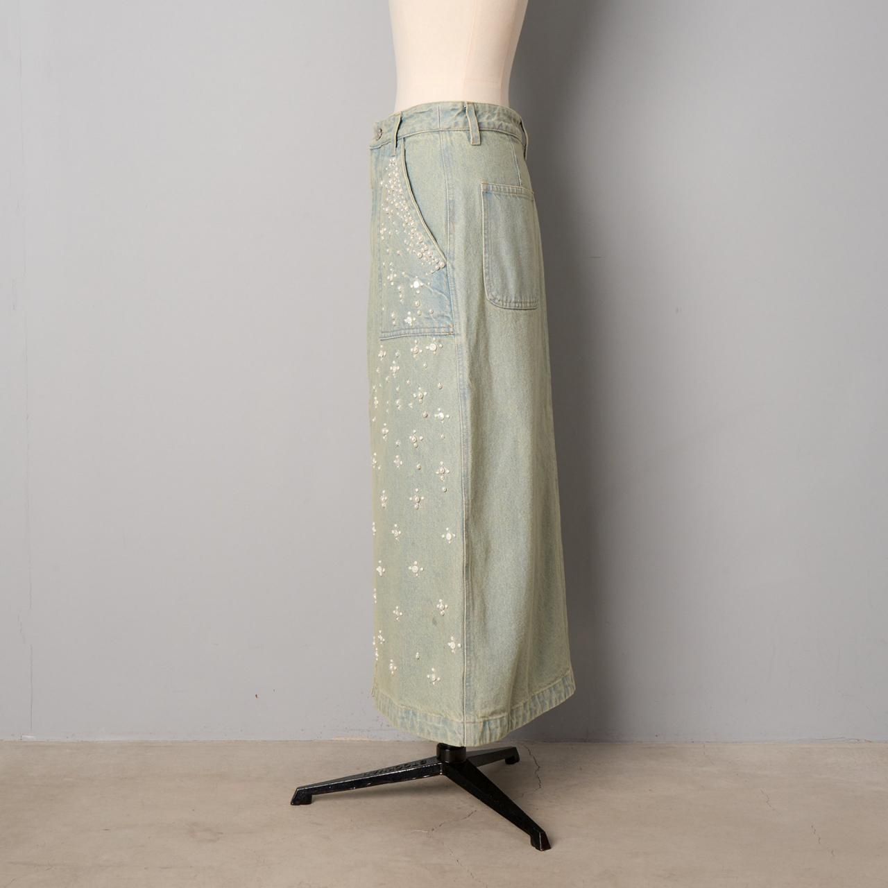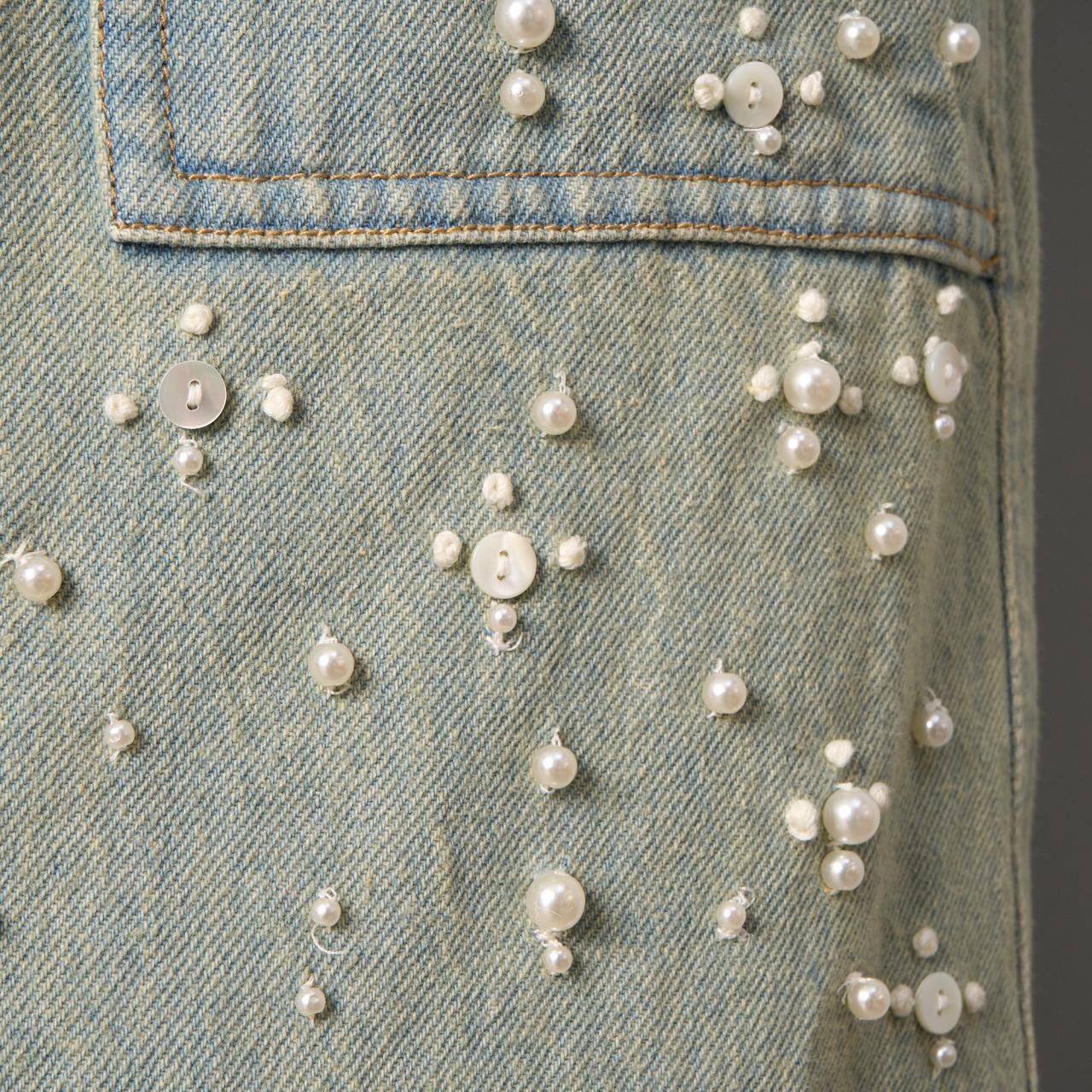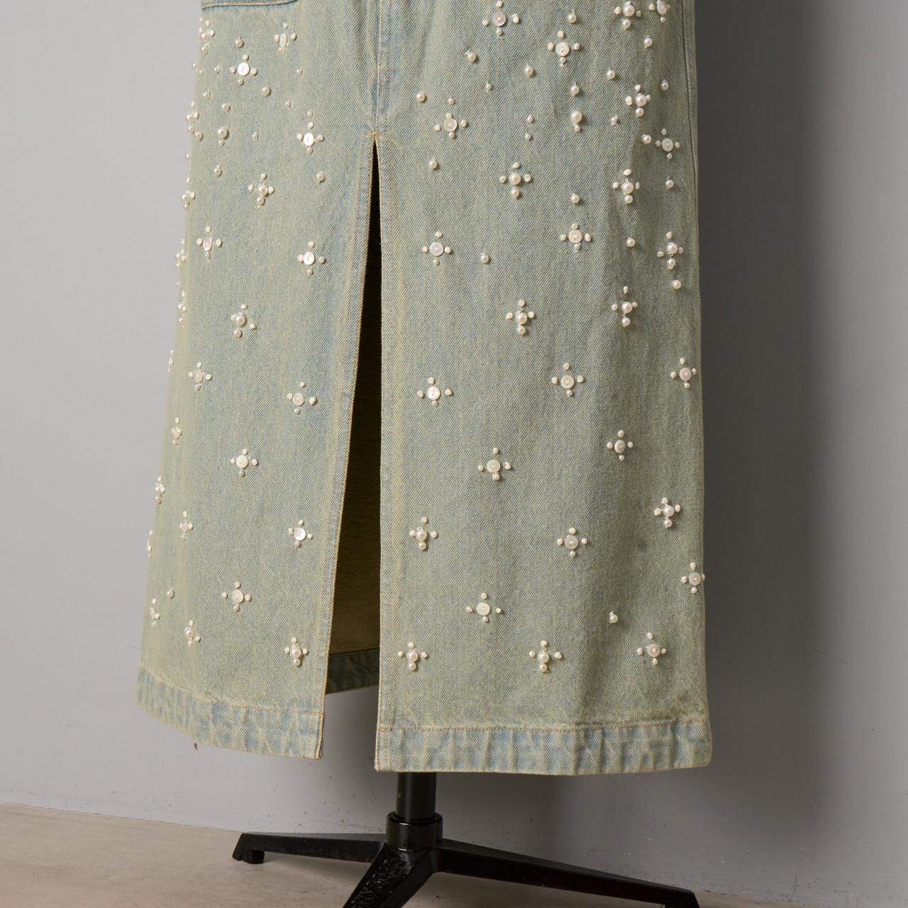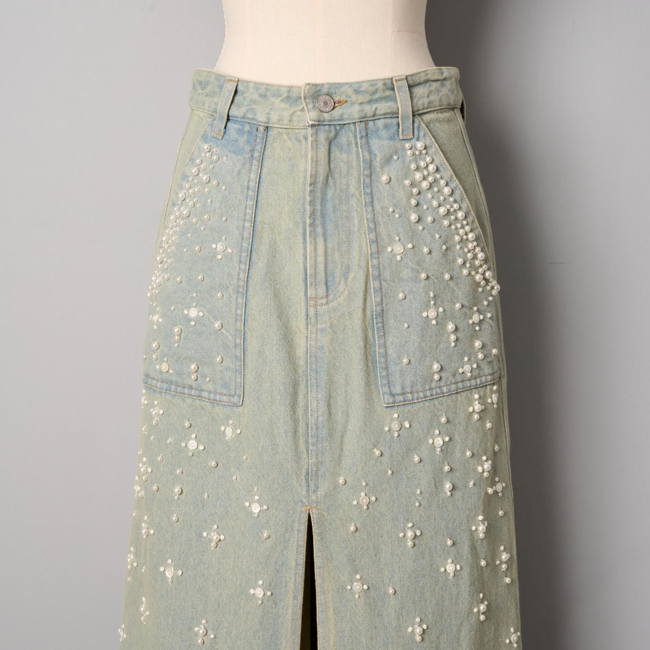パールの装飾が目を惹くスカートなのでトップスはシンプルなニットを合わせパンプスで女性らしく上品に合わせたり、ブーツで合わせても素敵だと思います。