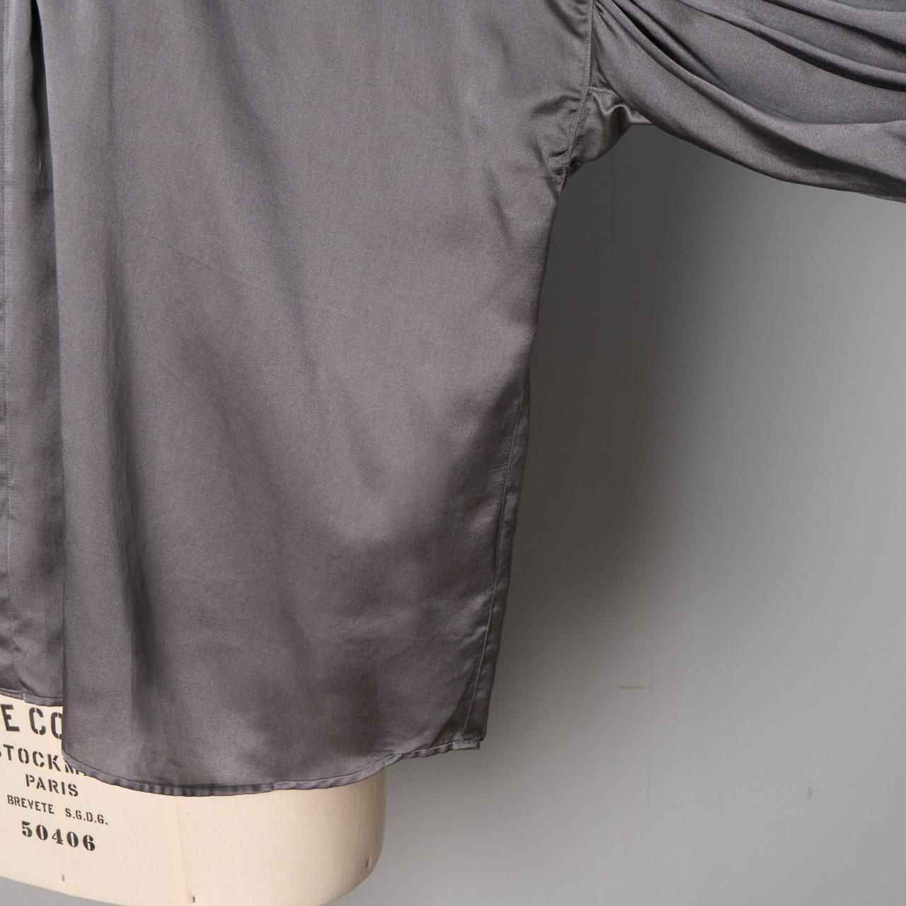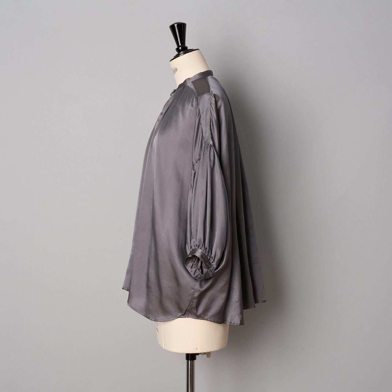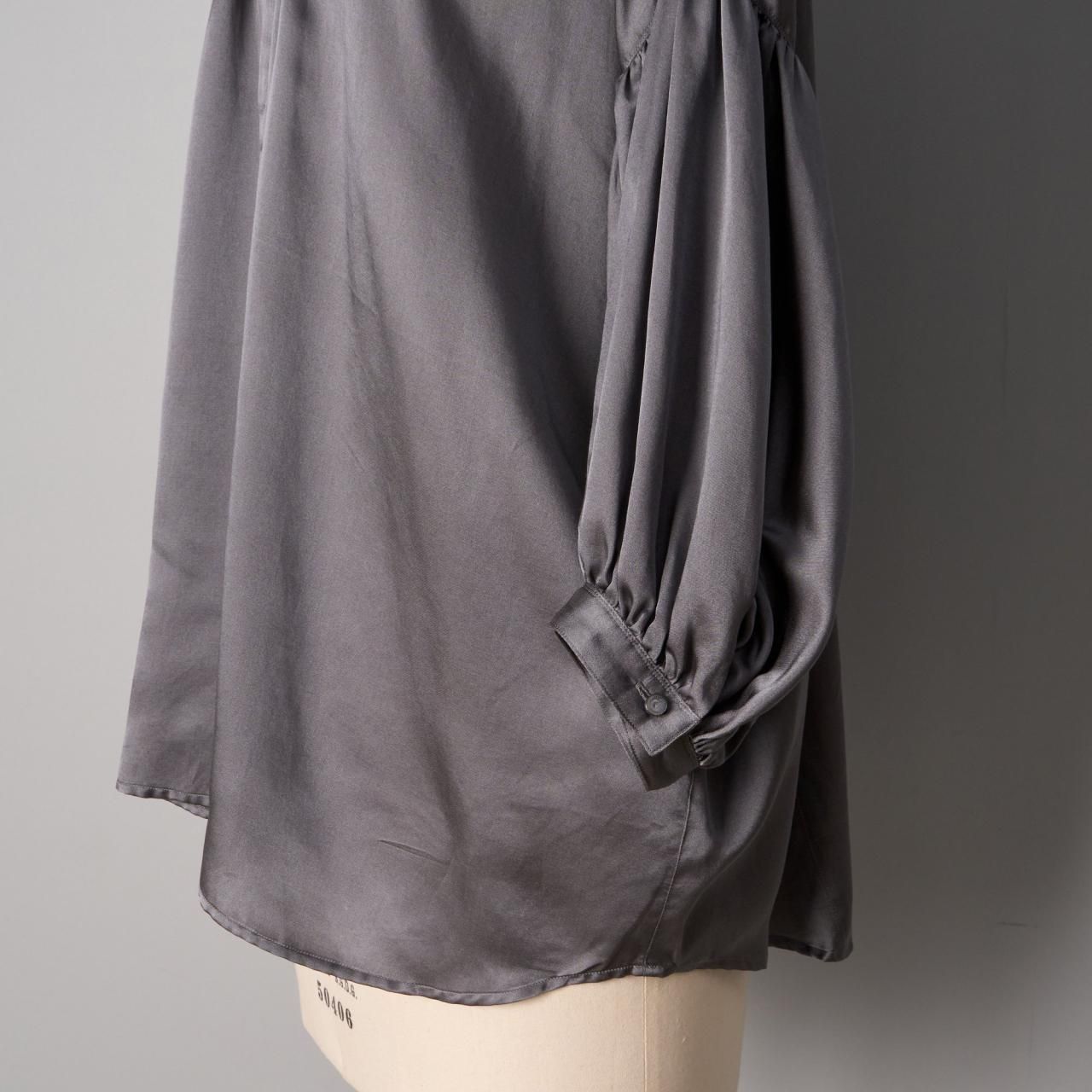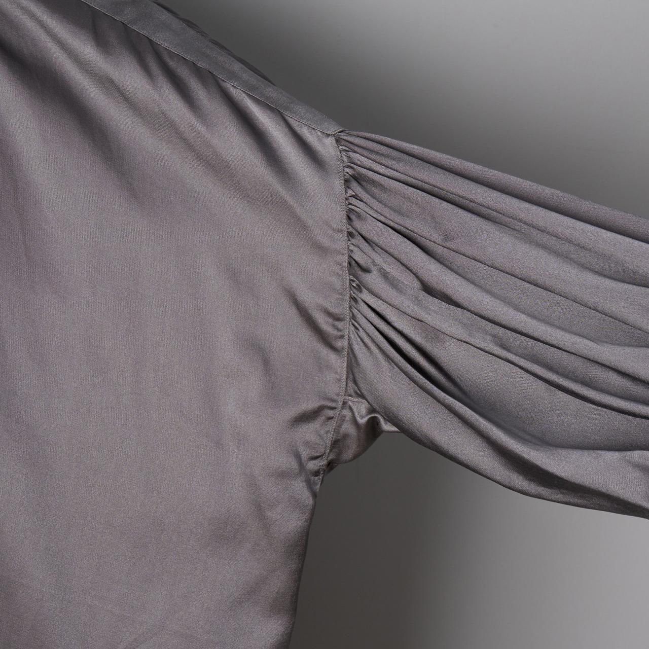 ゆったりとしたシルエットですが、七分袖なのでバランスがとりやすく袖口を肘まで上げてバルーンスリーブのようにして着ていただくのもおすすめします。