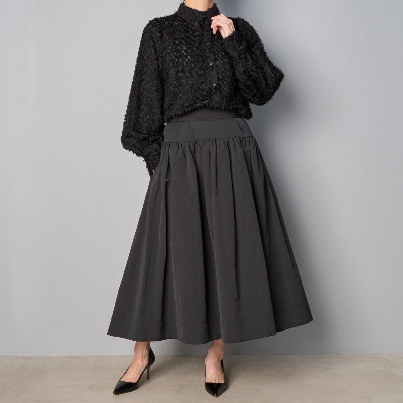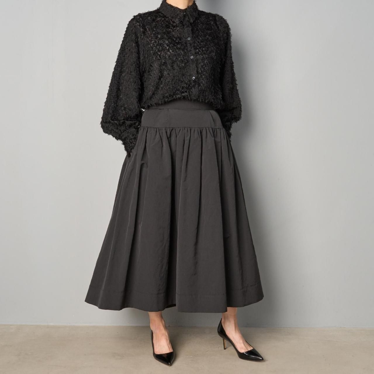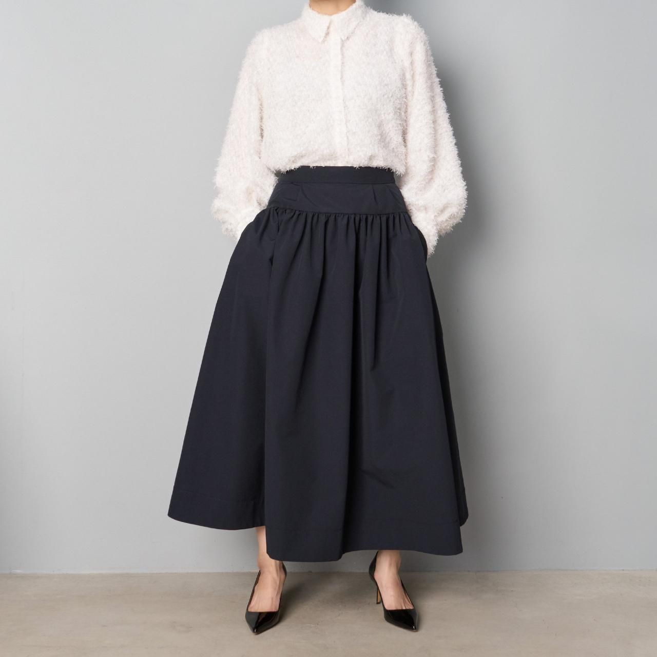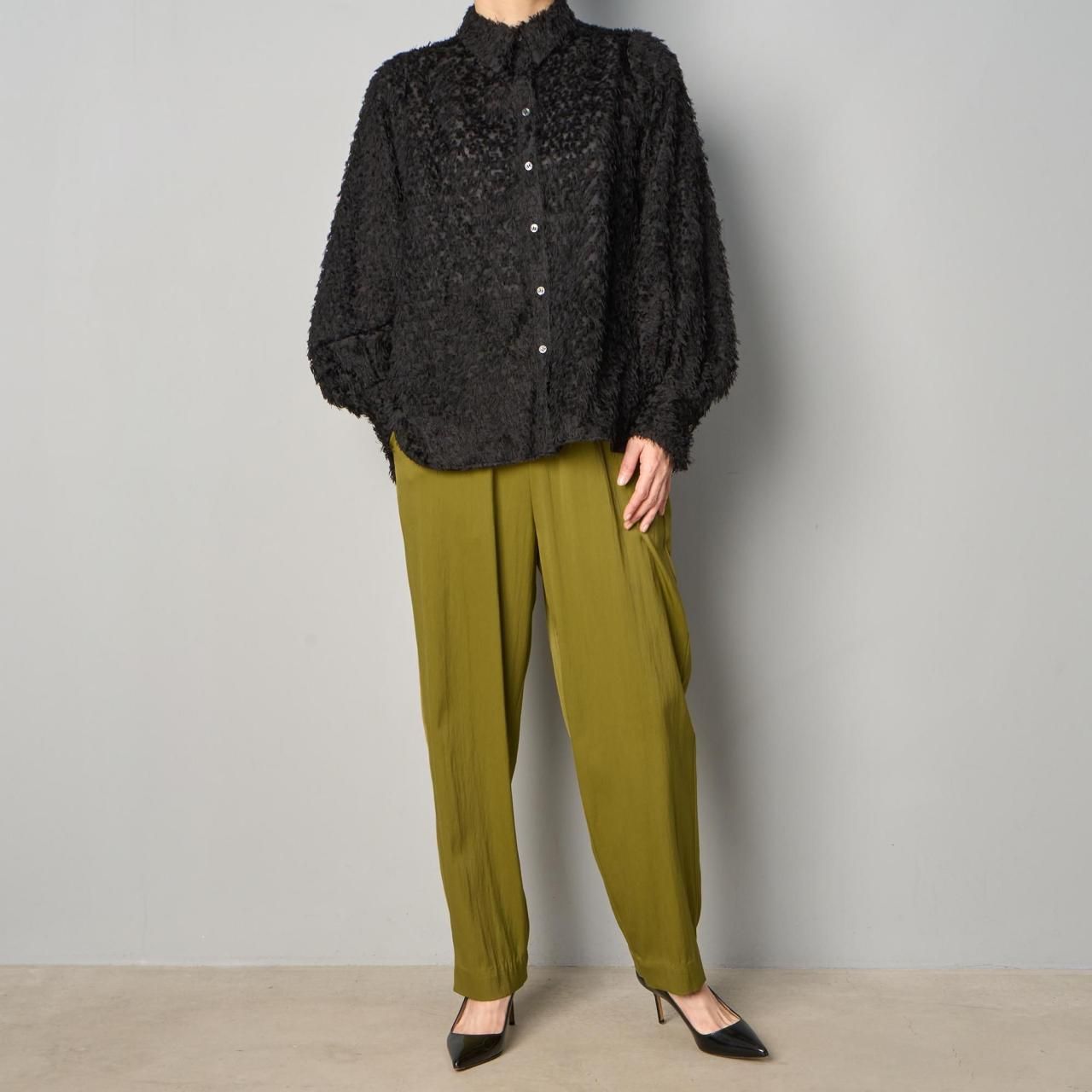 お手元のシンプルなパンツやスカート、あらゆるタイプのボトムスに合わせていただけるシャツです。