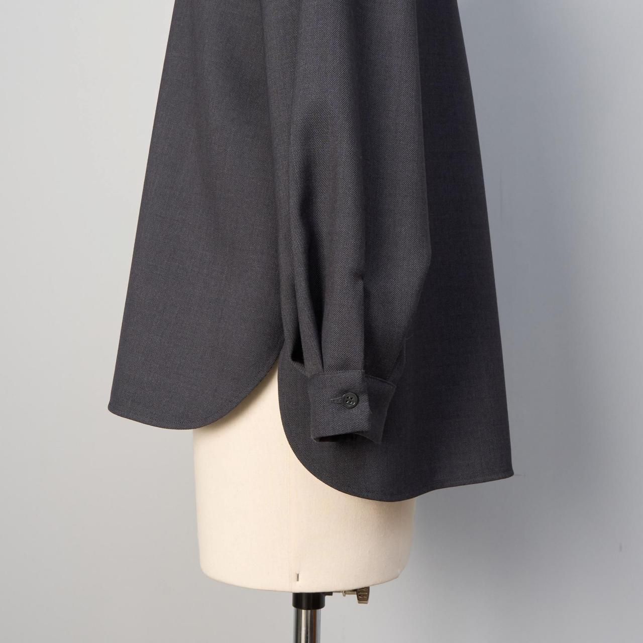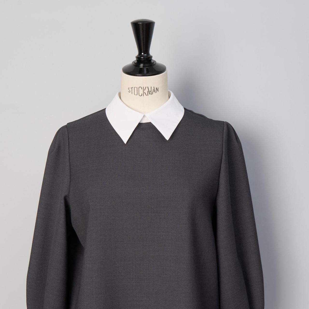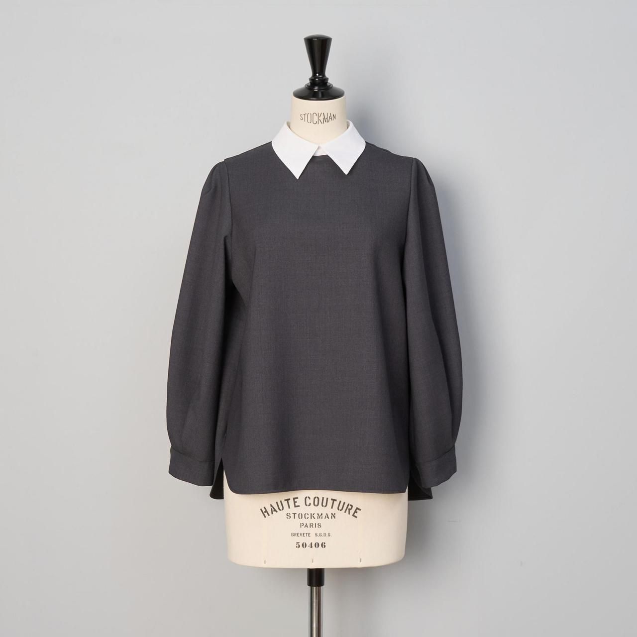 襟はホワイト、ボディはグレーとストライプの2色展開。