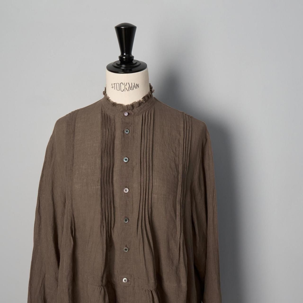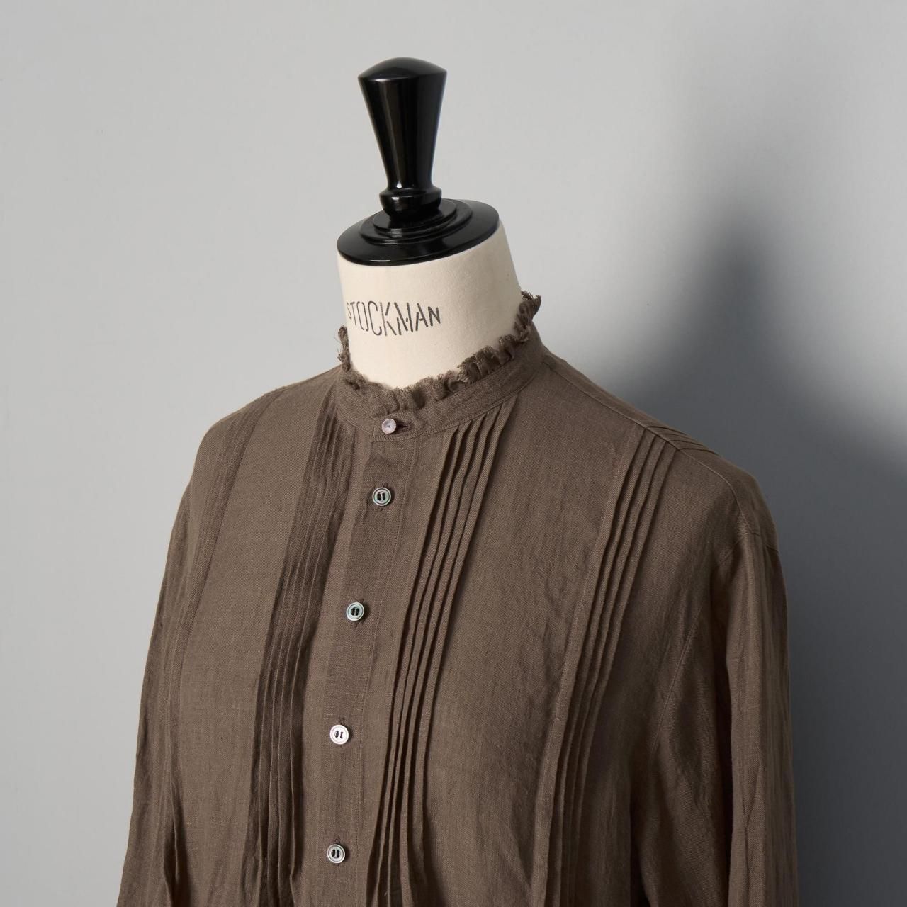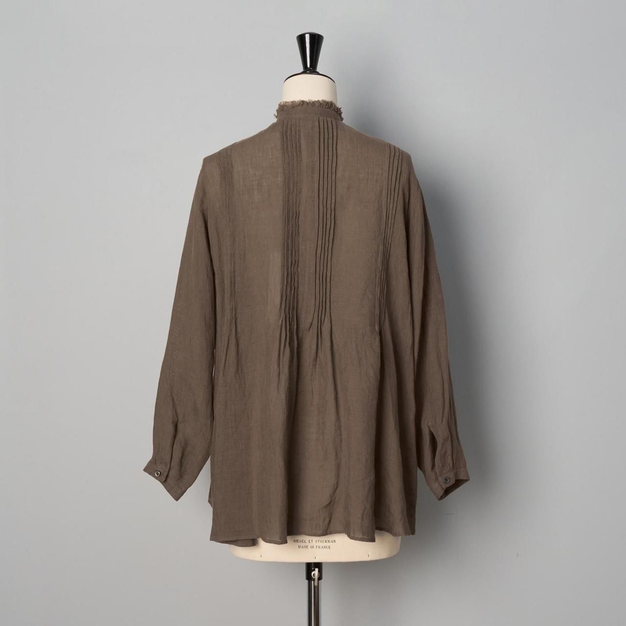 前後ともに肩から胸下辺りまで入れられたピンタックが