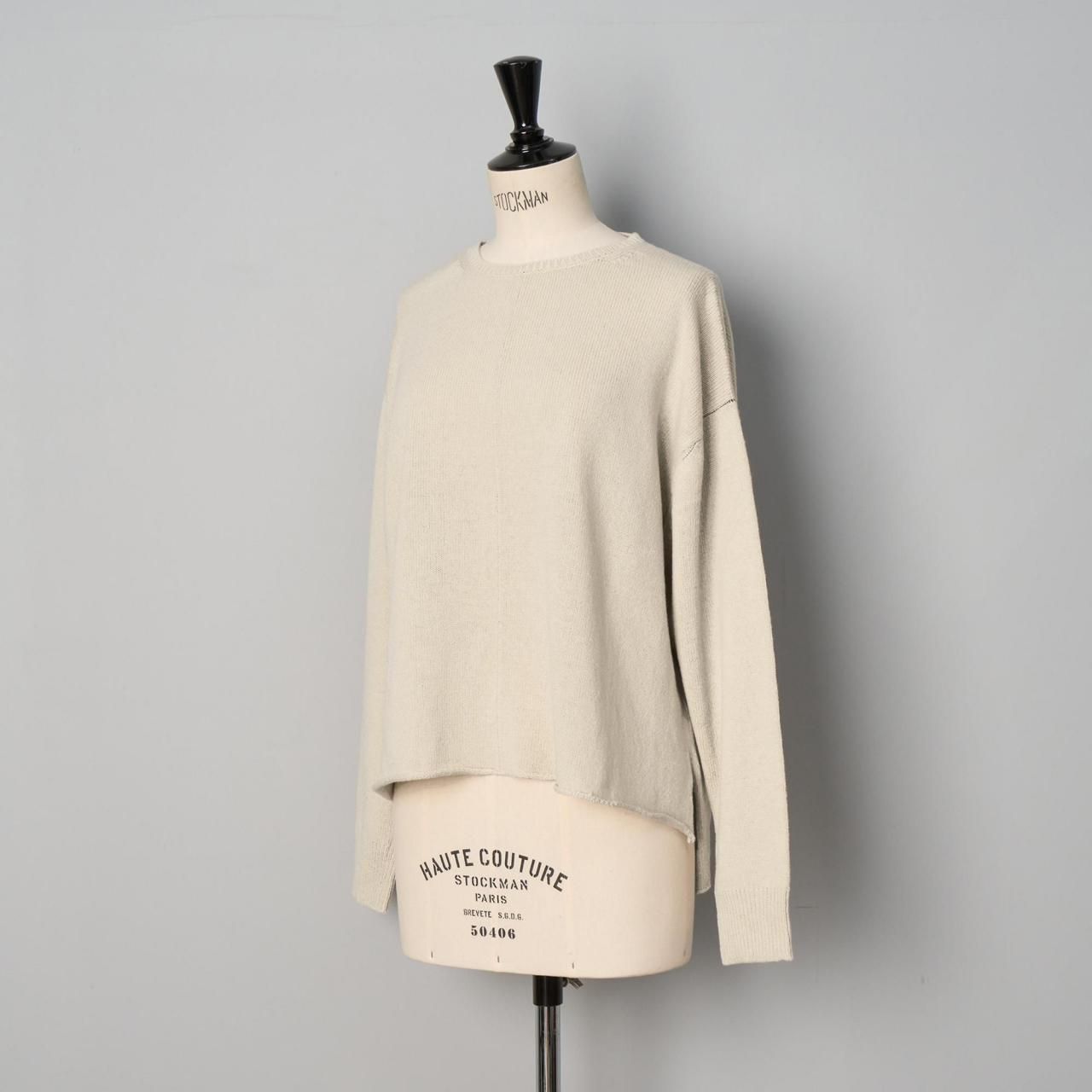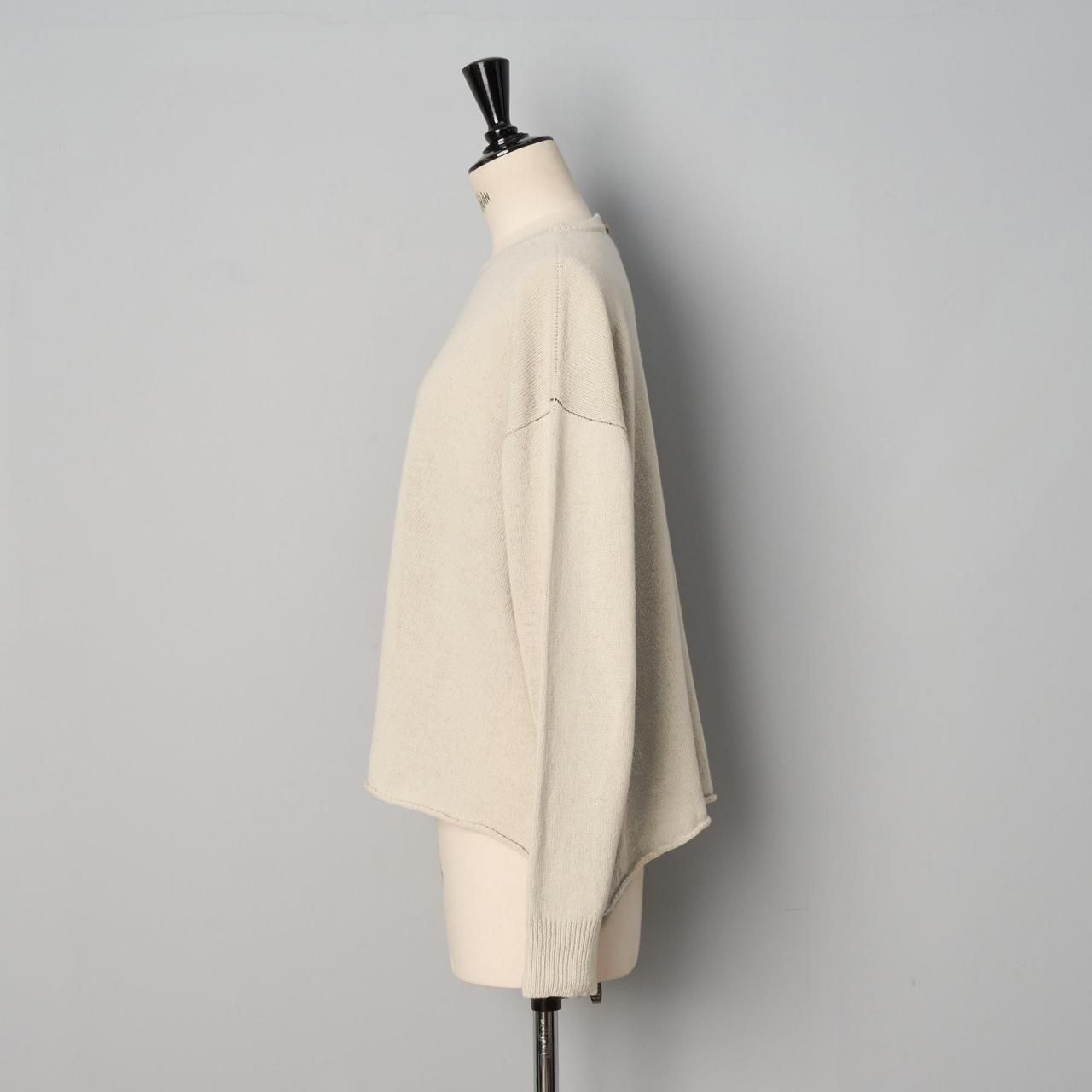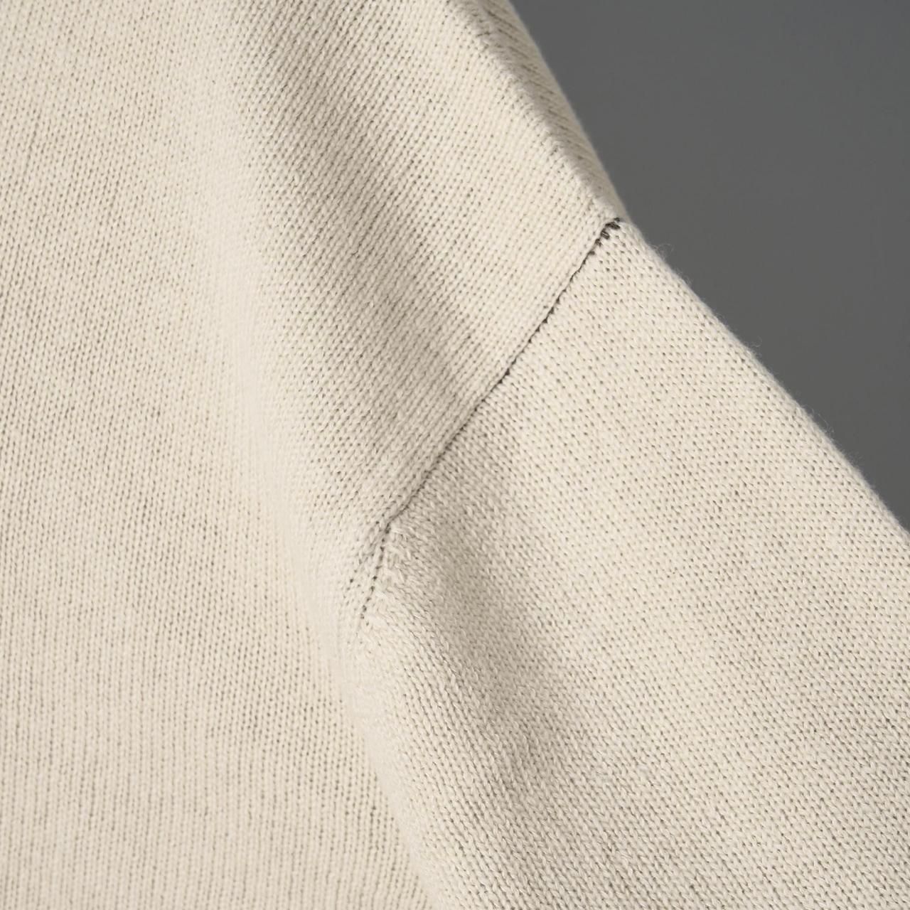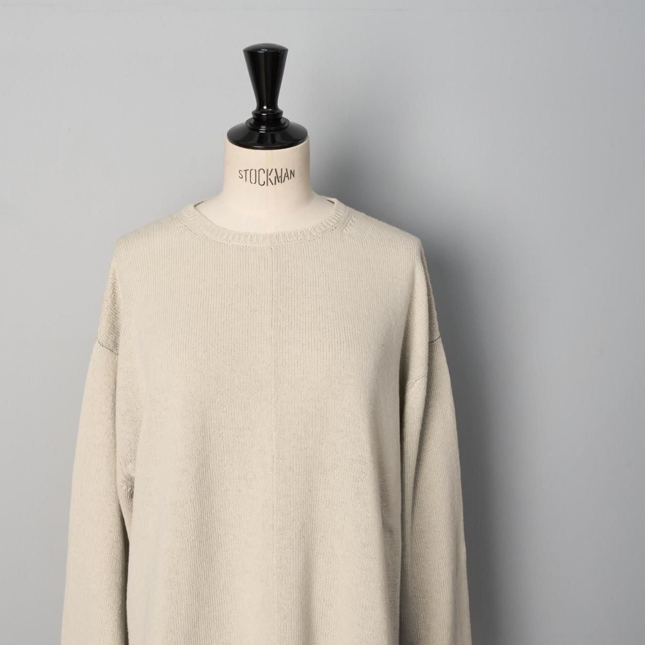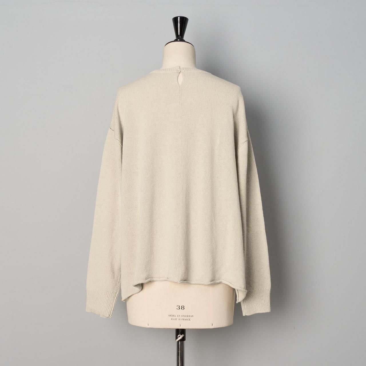 クルーネックにゆったりしたドロップショルダー、長めの袖は短めの着丈でバランスが取れやすく丈の長いものとも合わせやすくなっています。
