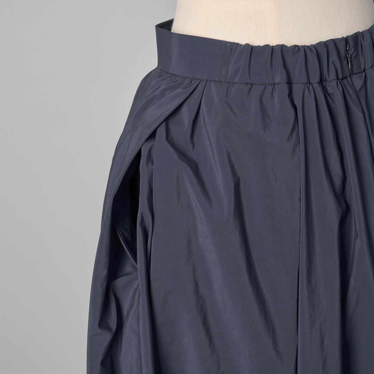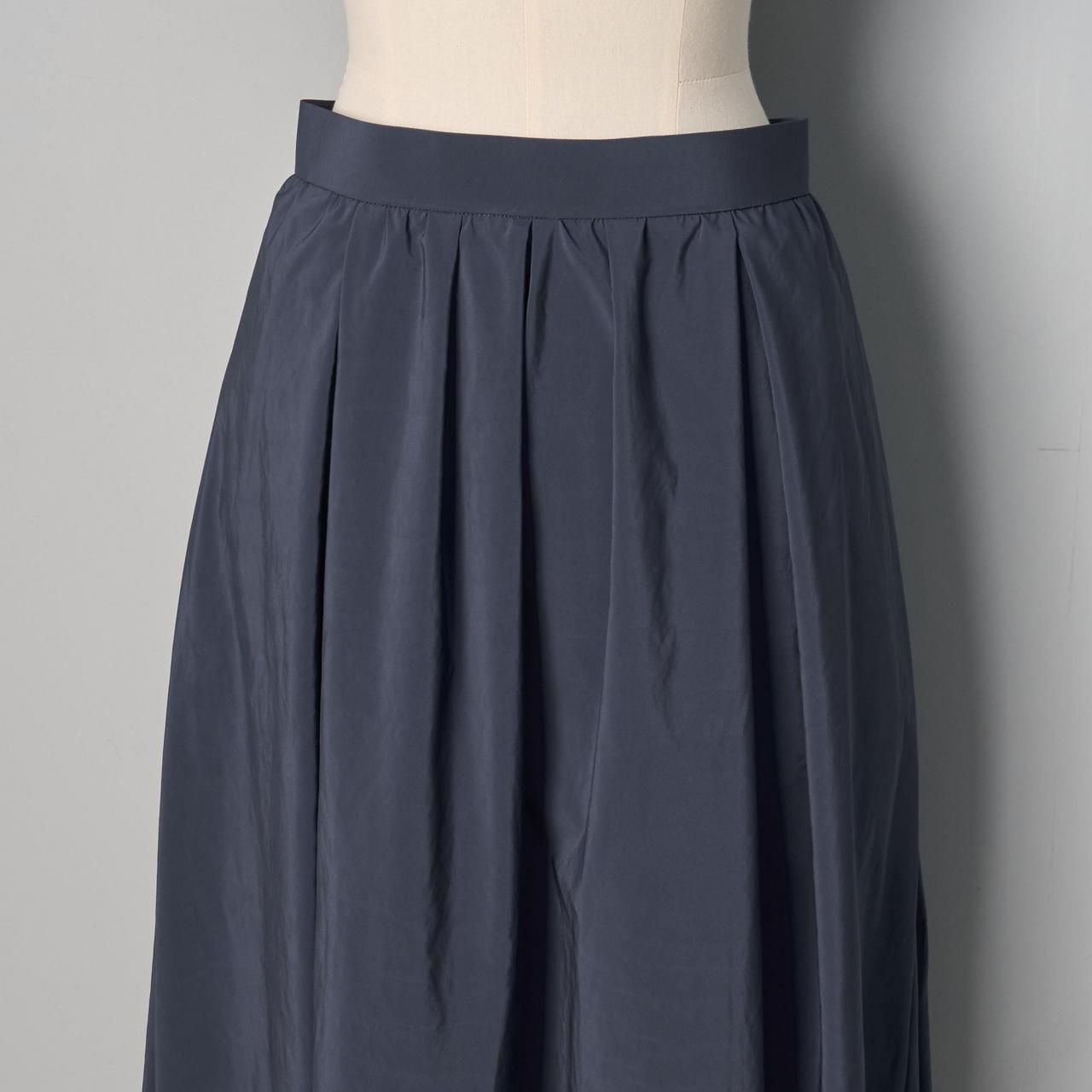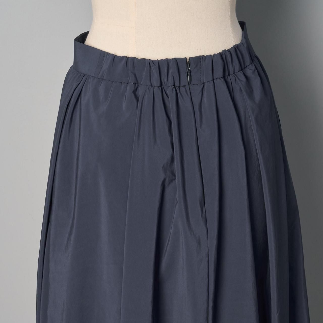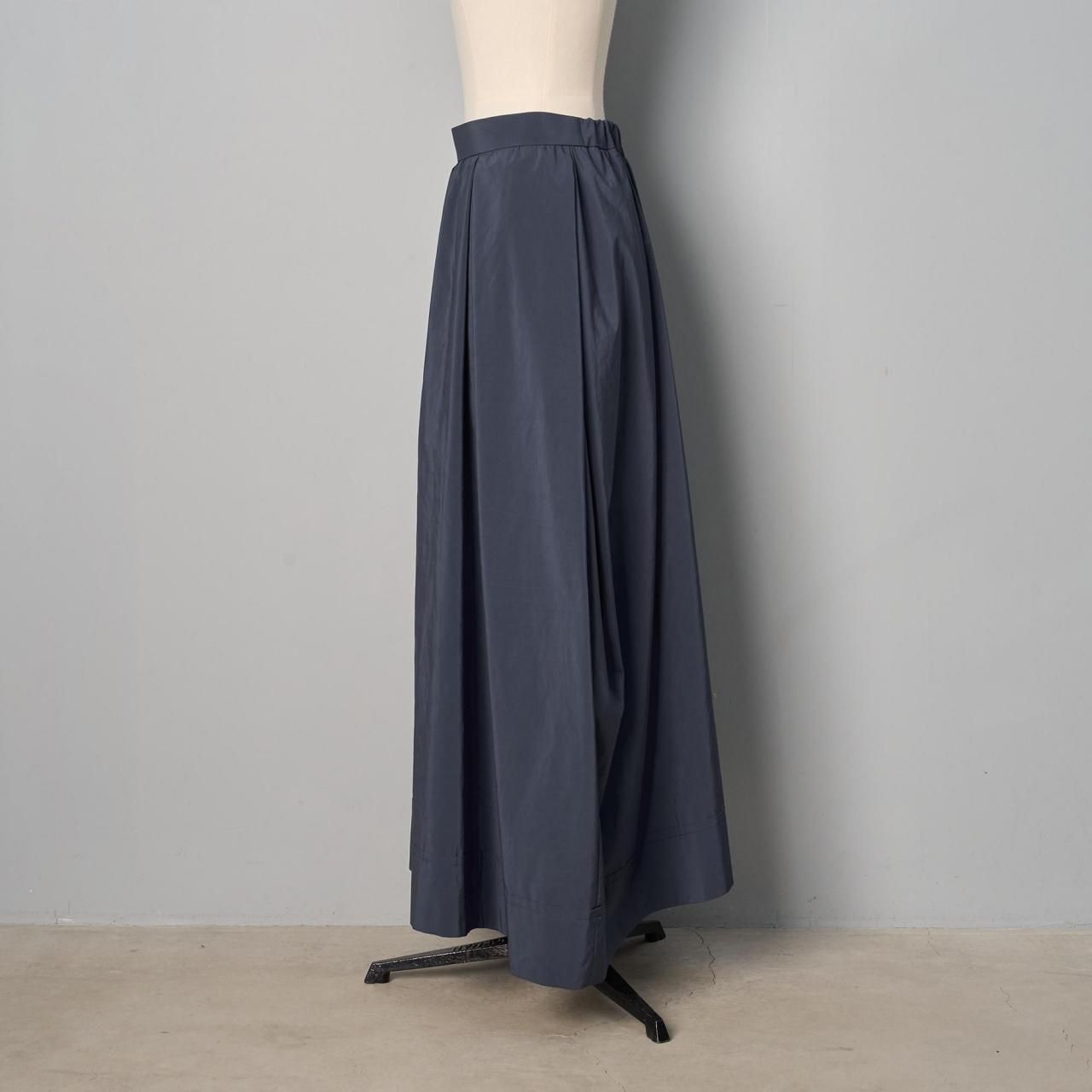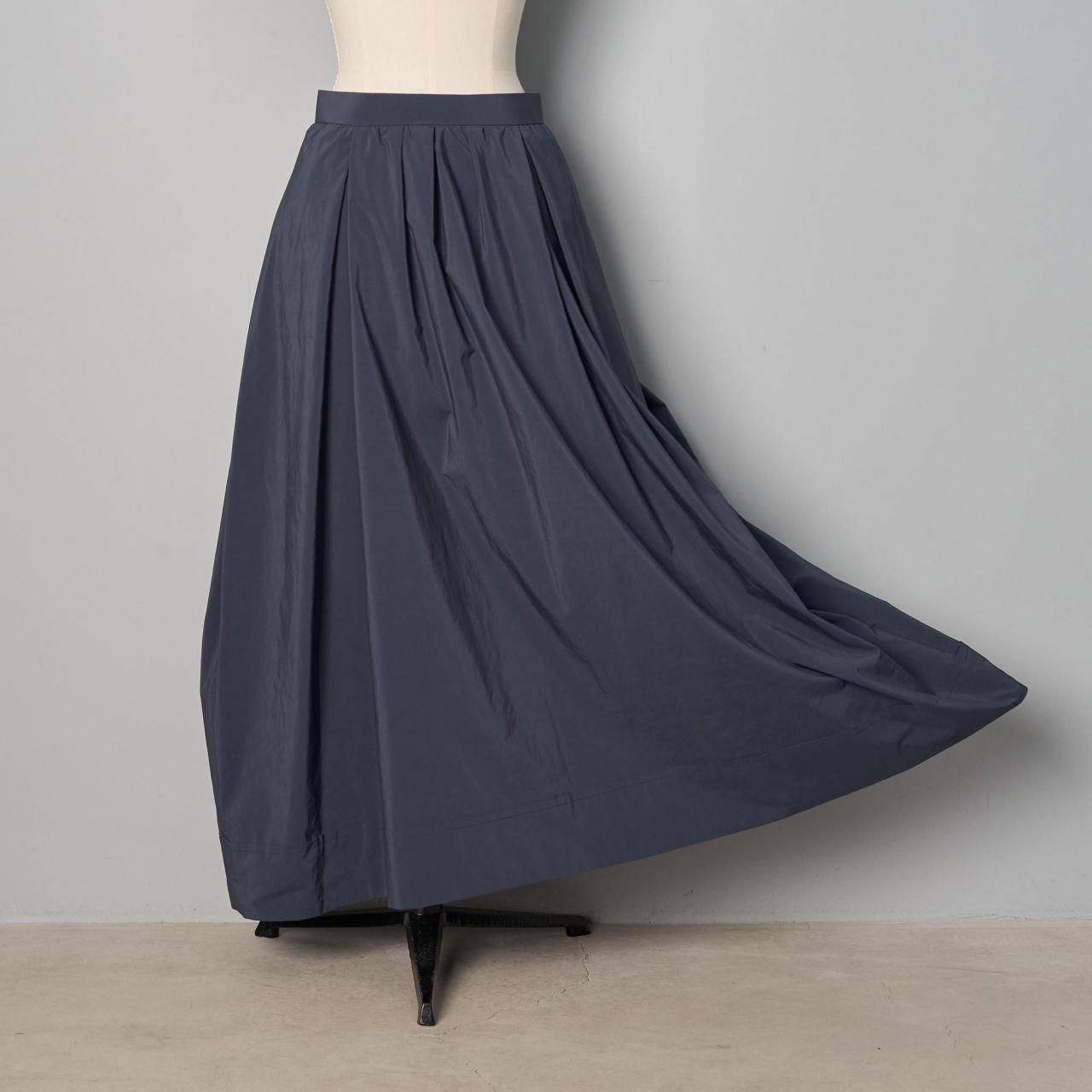 動くとフォルムが柔らかく変化する様がマキシ丈スカートならではの楽しみ。