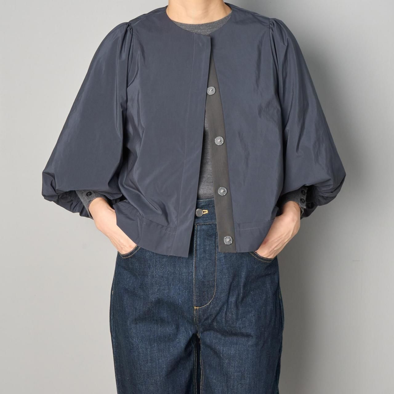 同じ素材を使って、バルーンスリーブのジャケットをつくりました。